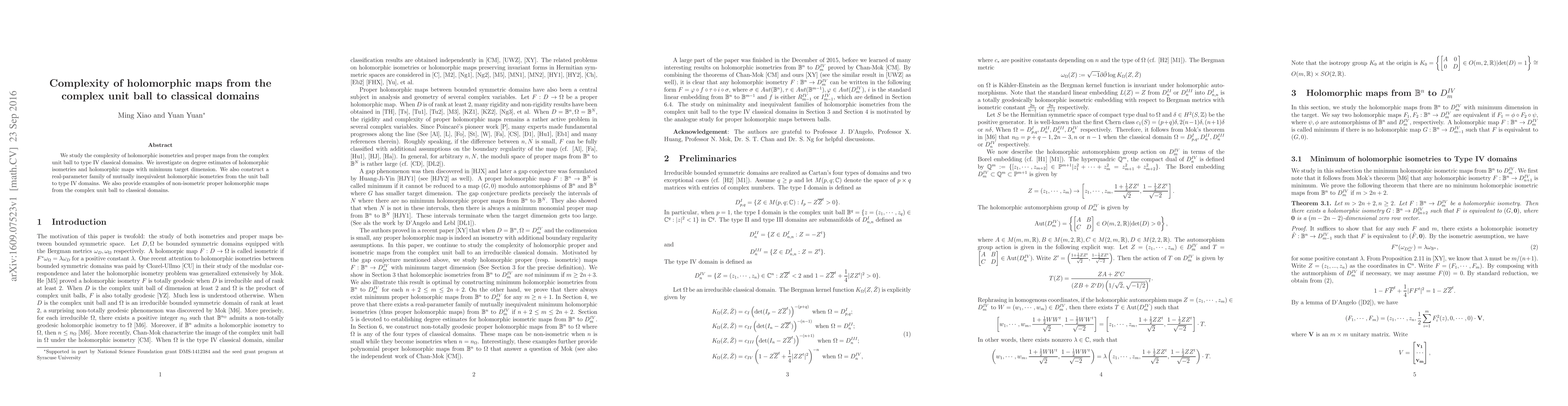 Summary: This research explores the complexity of holomorphic isometries and proper maps from the complex unit ball to type IV classical domains, focusing on degree estimates and constructing a family of inequivalent holomorphic isometries, alongside examples of non-isometric proper holomorphic maps.