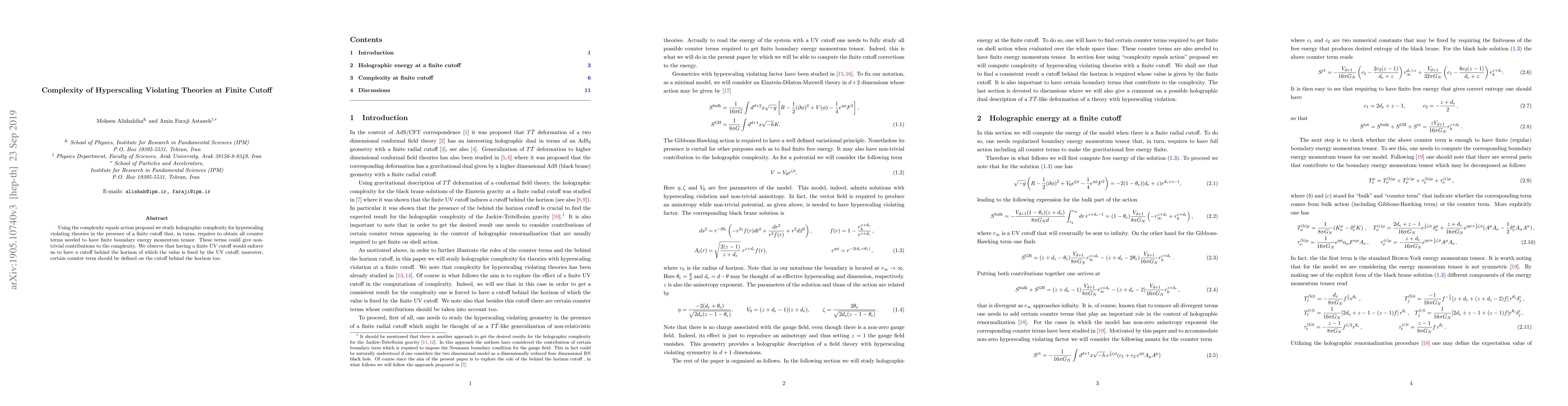 This paper investigates holographic complexity in hyperscaling violating theories using the complexity equals action principle, focusing on the effects of a finite ultraviolet cutoff. It finds that a finite cutoff necessitates a corresponding cutoff behind the horizon, influencing the boundary energy-momentum tensor and potentially contributing non-trivially to the complexity.