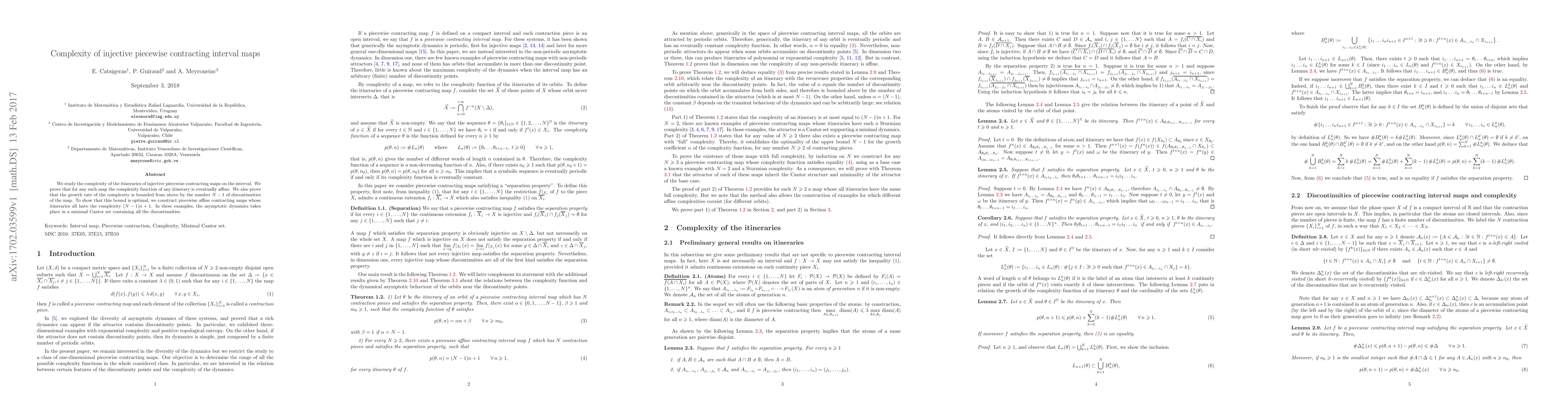 This paper investigates the complexity of itineraries for injective piecewise contracting maps on an interval, proving that the complexity function is eventually affine and grows at most at a rate determined by the number of discontinuities of the map. It also demonstrates an optimal bound through specific examples of piecewise affine contracting maps.