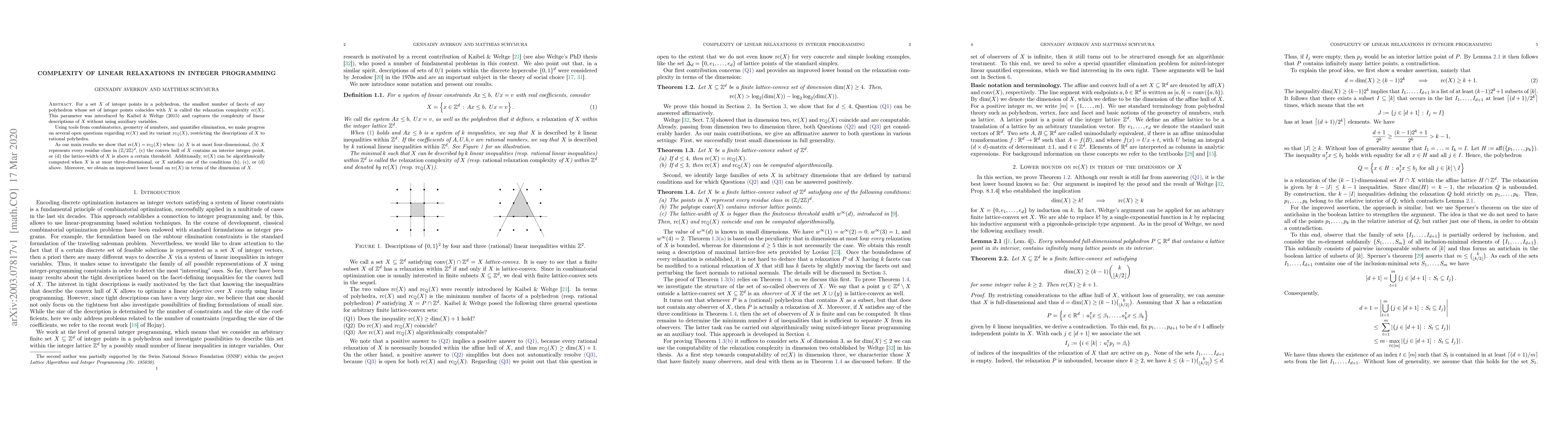 Christopher Hojny, Gennadiy Averkov, Manuel Aprile et al.