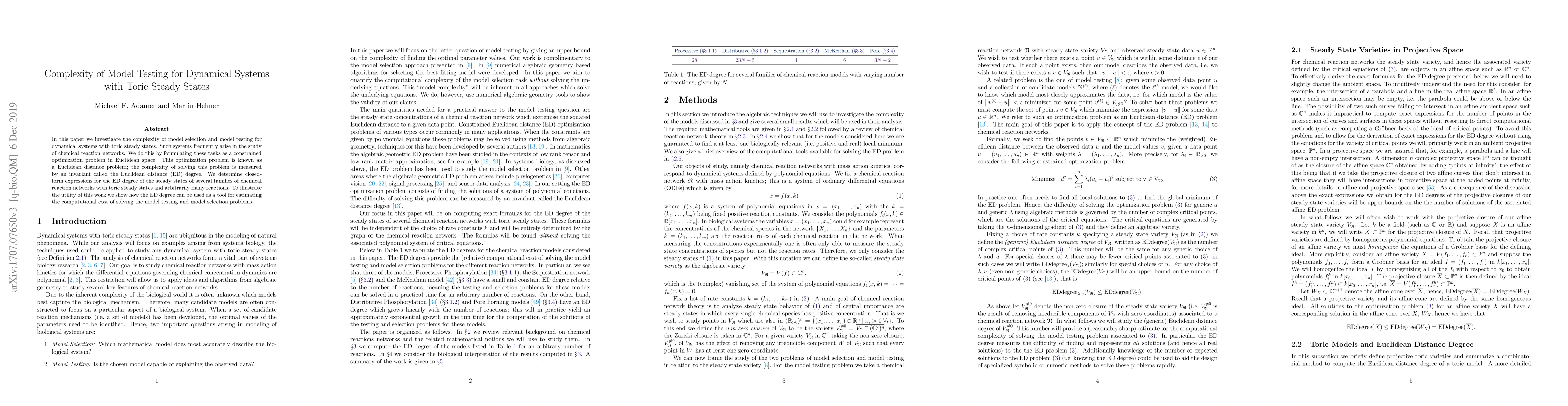 This paper investigates the computational complexity of model selection and testing for dynamical systems with toric steady states, framing these tasks as Euclidean distance problems. It determines closed-form expressions for the ED degree across various chemical reaction networks, demonstrating the utility of the ED degree in estimating computational costs.