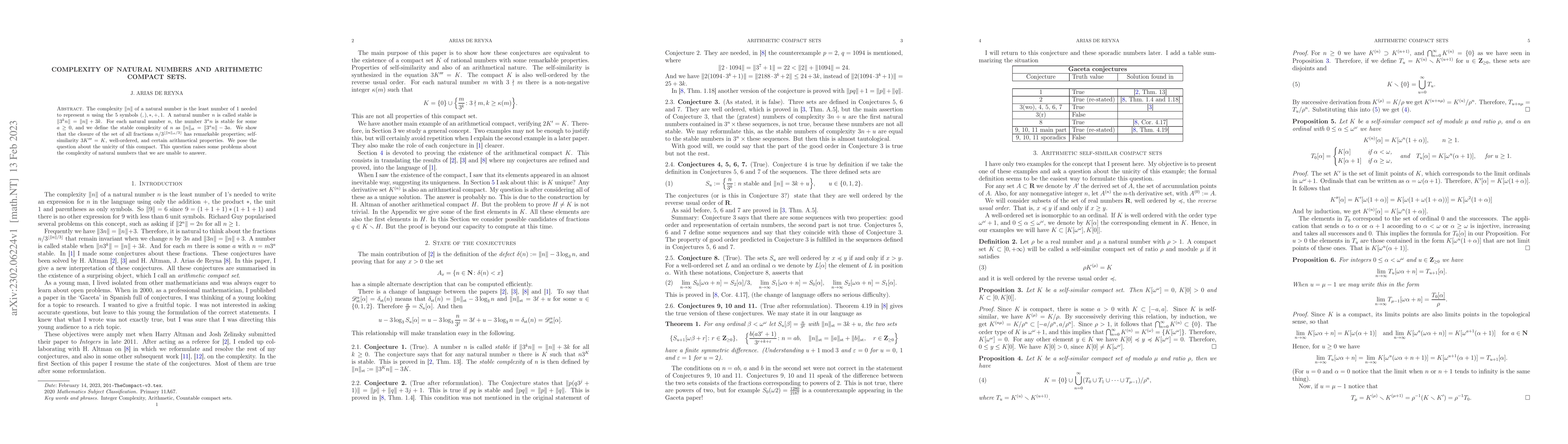 The paper introduces a new way to define and analyze the complexity of natural numbers, leading to the discovery of remarkable properties of a specific arithmetic compact set.