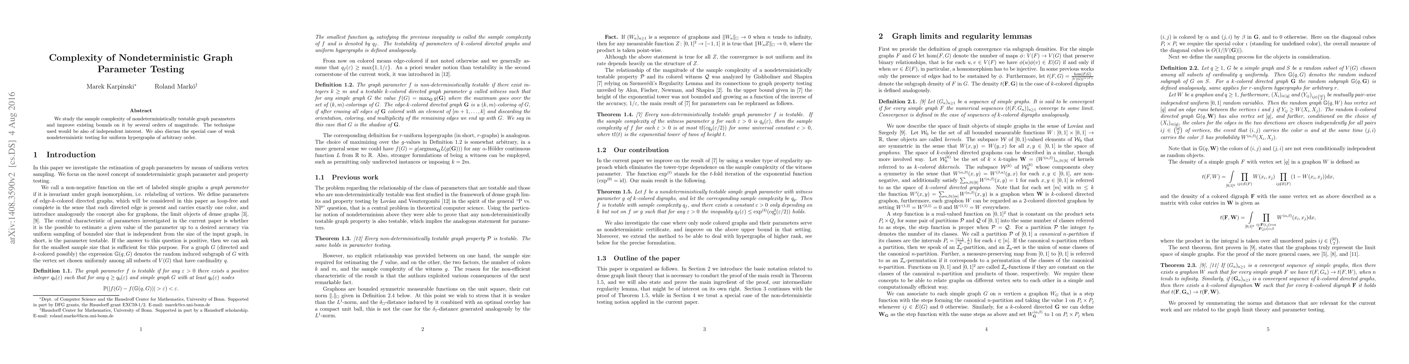 This paper significantly improves the sample complexity bounds for testing nondeterministic graph parameters, employing a novel technique that also applies to hypergraphs. It specifically addresses weak nondeterministic testing for uniform hypergraphs.
