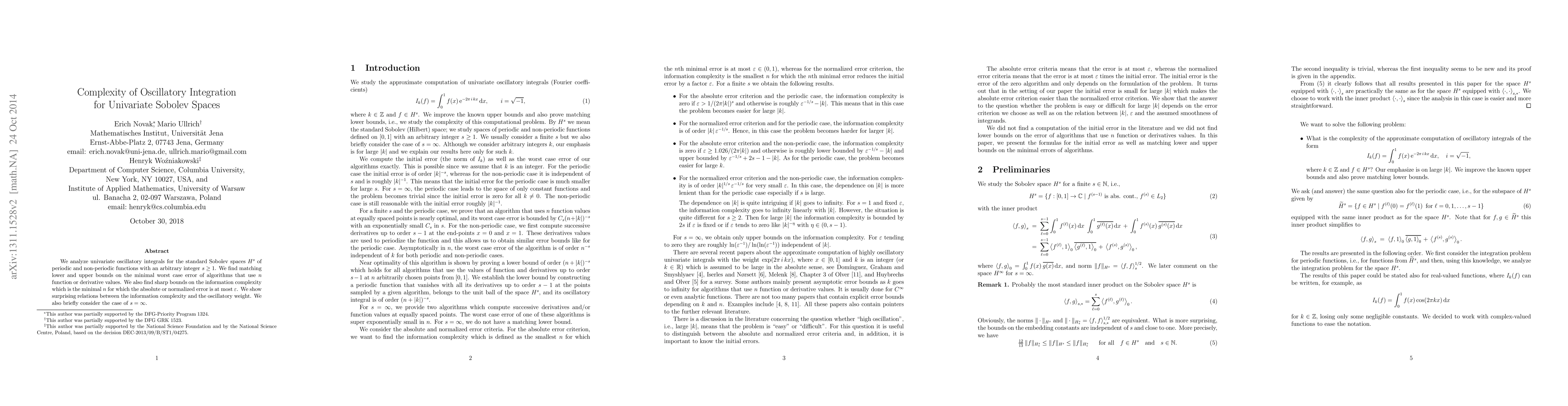 Researchers analyzed univariate oscillatory integrals for Sobolev spaces $H^s$, finding matching bounds on minimal worst-case error and information complexity, with surprising relations to the oscillatory weight.