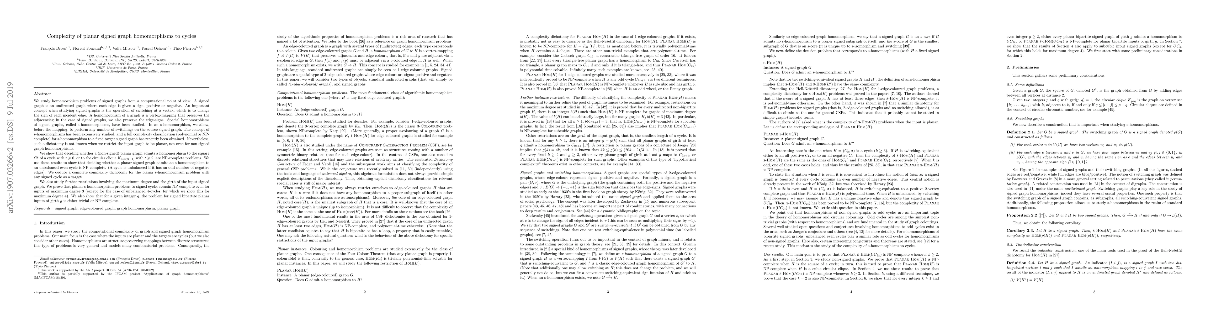 This paper investigates the complexity of homomorphism problems for planar signed graphs, focusing on homomorphisms to cycles. It demonstrates that deciding if a planar graph has a homomorphism to specific cycles (like $C_t^2$ and $K_{4t/(2t-1)}$) is NP-complete. It further proves that planar signed graph s-homomorphisms to unbalanced even cycles are also NP-complete, establishing a complete complexity classification for this problem. The study also examines restrictions based on maximum degree and girth, showing that these problems remain NP-complete under various constraints.