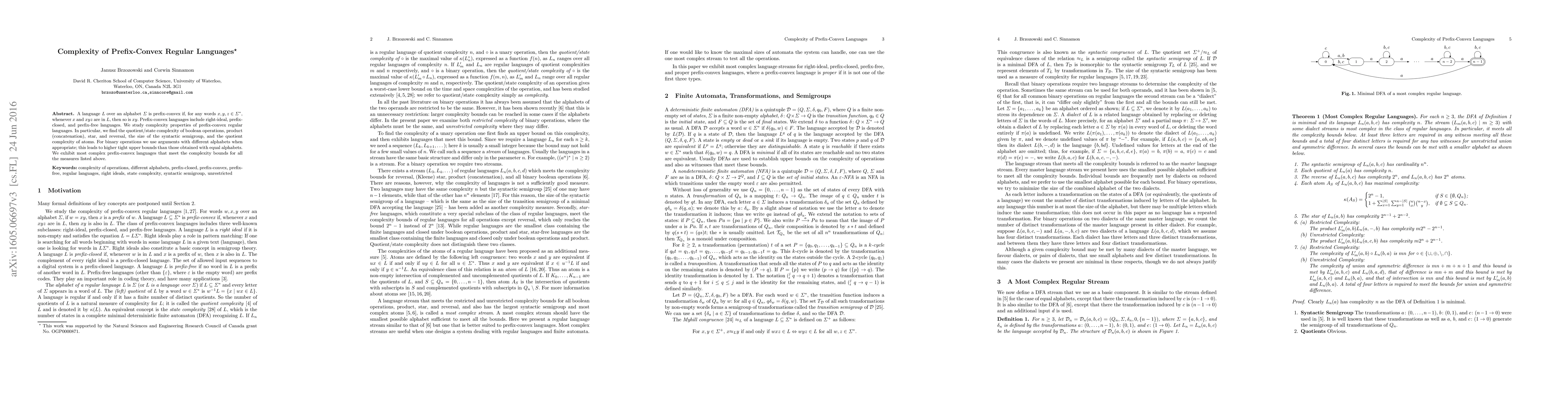 This paper investigates the complexity properties of prefix-convex regular languages, including their quotient and state complexity for boolean operations, concatenation, star, and reversal. It also examines the size of the syntactic semigroup and the quotient complexity of atoms, providing tight upper bounds for these measures.