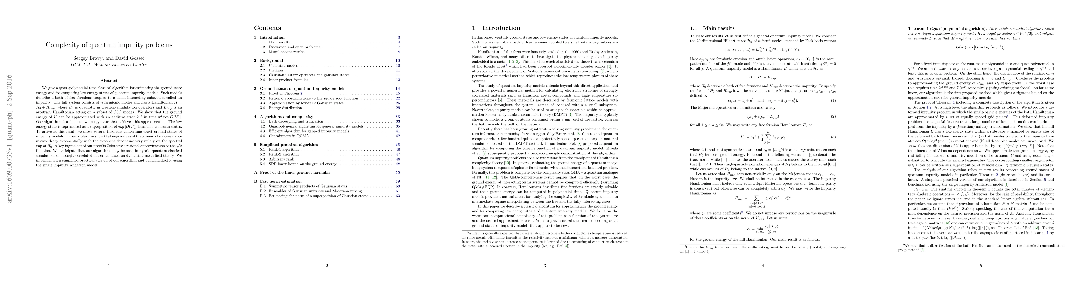 This paper presents a quasi-polynomial time classical algorithm for estimating the ground state energy and computing low energy states of quantum impurity models, achieving an additive error of $2^{-b}$ in time $n^3 \exp{[O(b^3)]}$. The algorithm also represents low energy states as superpositions of fermionic Gaussian states.