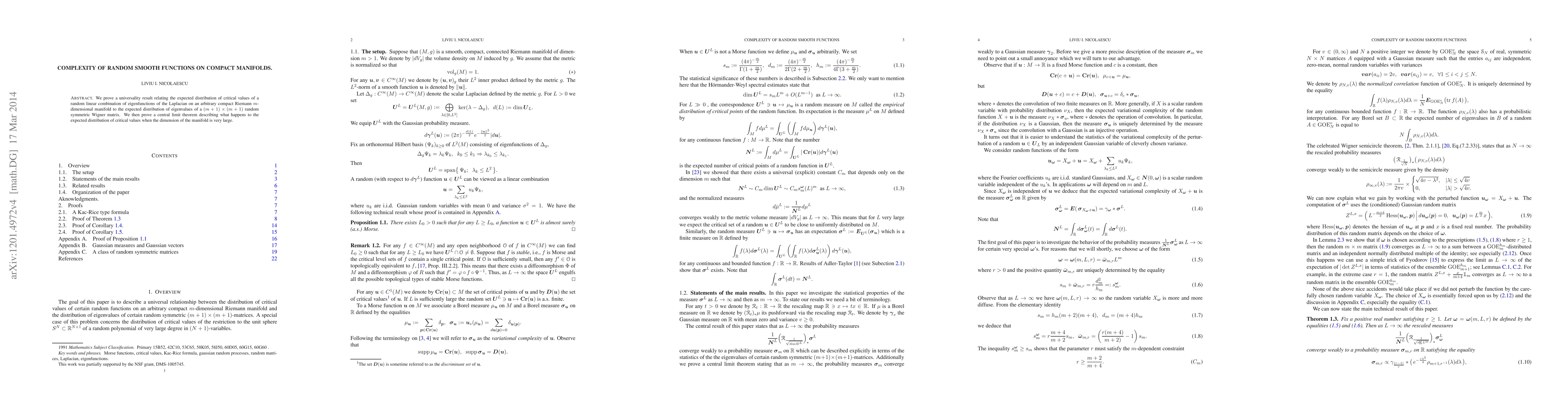 We relate the distribution of eigenvalues of a random symmetric matrix in the Gaussian Orthogonal Ensemble to the distribution of critical values of a random linear combination of eigenfunctions of the Laplacian on a compact Riemann manifold. We then prove a central limit theorem describing what happens when the dimension of the manifold is very large.