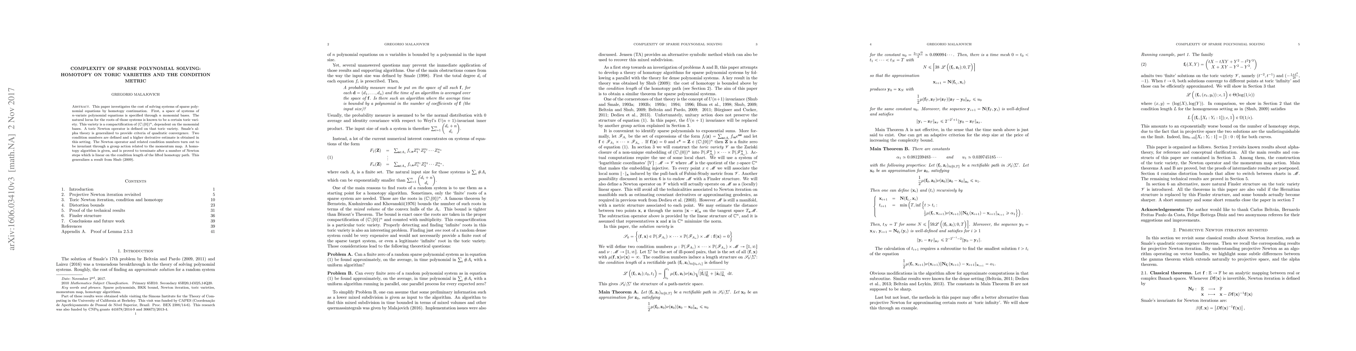 Researchers investigate a method to solve sparse polynomial equations using homotopy continuation on toric varieties, establishing criteria for quadratic convergence and linear termination rates.