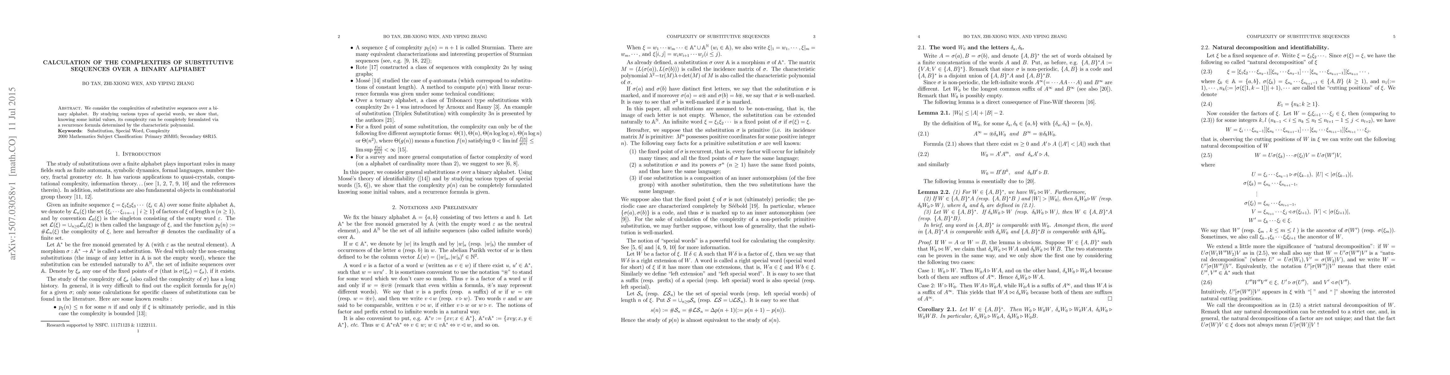 This paper investigates the complexities of substitutive sequences using a binary alphabet, demonstrating that the sequence's complexity can be fully described through a recurrence formula derived from its characteristic polynomial, given some initial values.