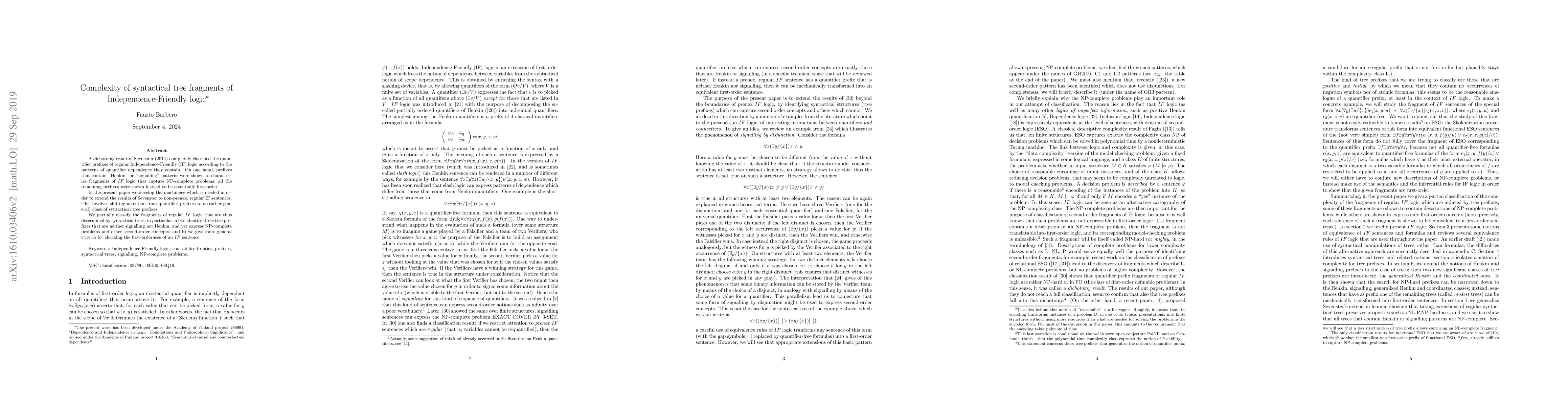 This paper extends Sevenster's classification of Independence-Friendly logic fragments by focusing on syntactical tree prefixes instead of quantifier prefixes. It identifies three tree prefixes that express NP-complete problems and other second-order concepts, while also providing criteria for determining the first-orderness of IF sentences.