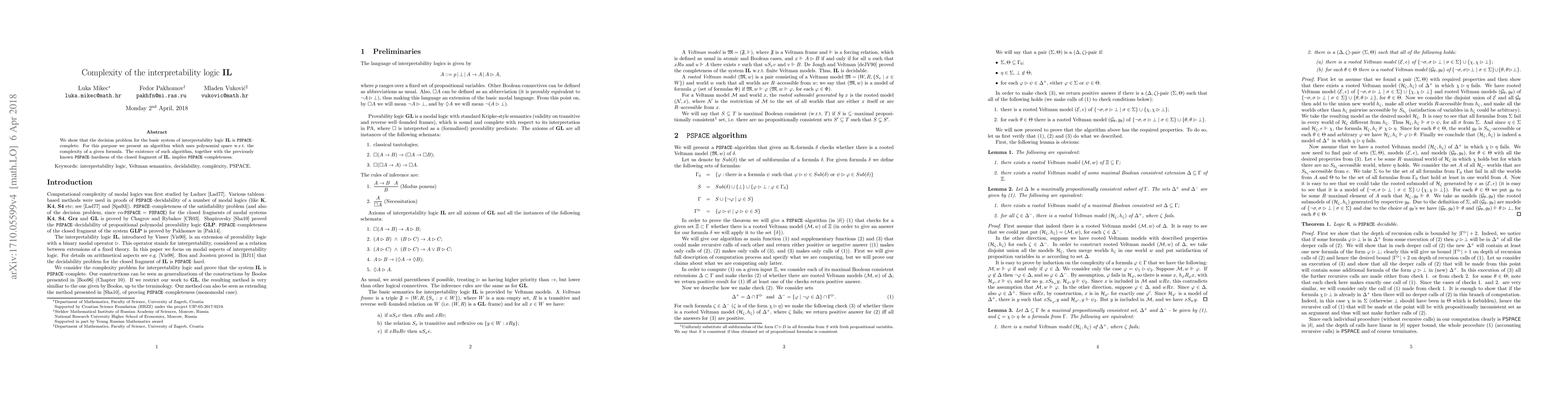 The paper demonstrates that the decision problem for the basic system of interpretability logic IL is PSPACE-complete, using a polynomial space algorithm, and confirms this through the combination of its existence and the known PSPACE hardness of IL's closed fragment.