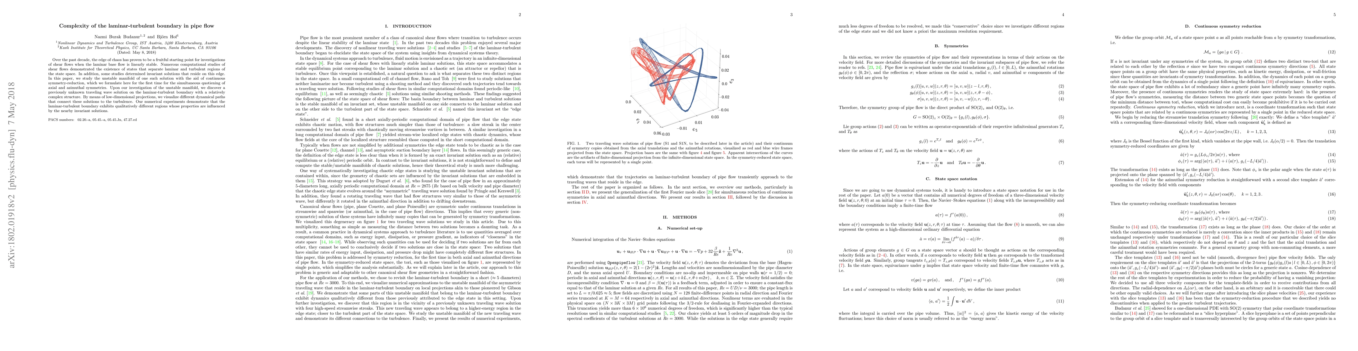 This paper investigates the boundary between laminar and turbulent flow in pipe flow, discovering a complex traveling wave solution on this boundary through continuous symmetry-reduction. It reveals distinct dynamical paths connecting invariant solutions to turbulence and shows how the boundary exhibits different regions influenced by these solutions.
