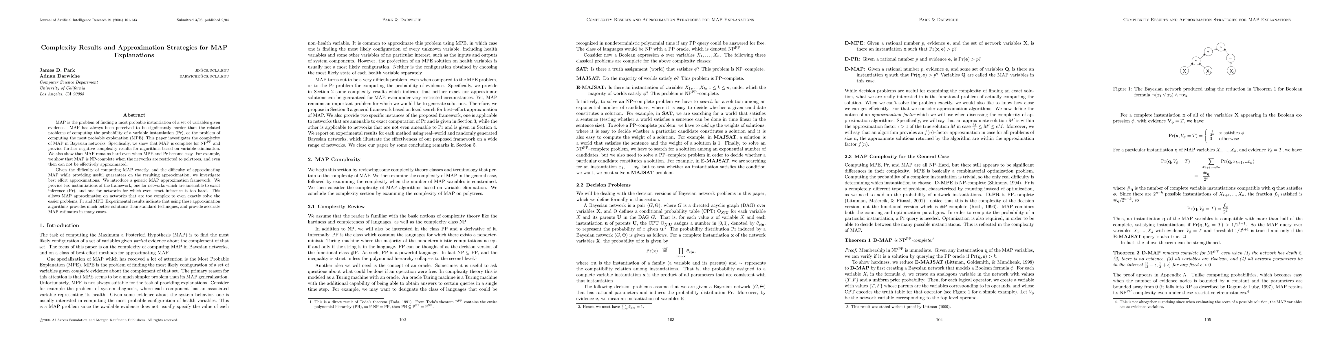This paper shows that MAP (Most Probable Explanation) is hard to solve exactly and even harder to approximate, but introduces a framework for approximating it with surprisingly accurate results.