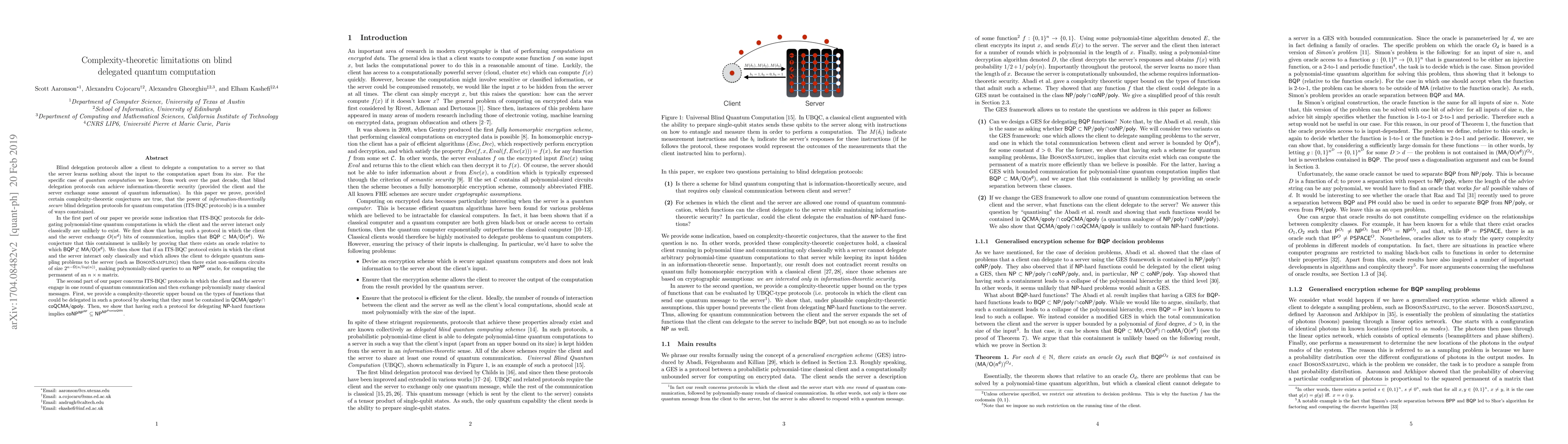 This paper explores the limitations of information-theoretically secure blind delegated quantum computation (ITS-BQC) protocols under complexity-theoretic assumptions. It argues that ITS-BQC protocols for $\mathsf{BQP}$ computations with classical interaction are unlikely, and that ITS-BQC protocols for quantum sampling problems imply the existence of large non-uniform circuits. It also provides an upper bound on the functions that can be delegated in one-round quantum communication protocols.