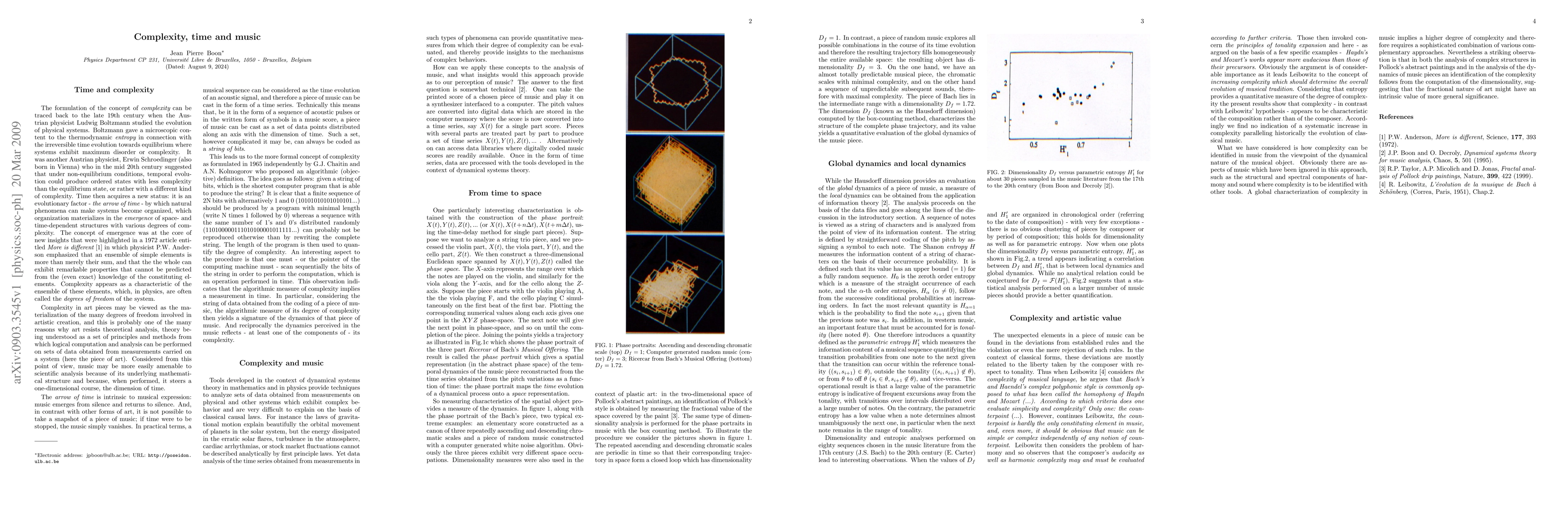 The concept of complexity as considered in terms of its algorithmic definition proposed by G.J. Chaitin and A.N. Kolmogorov is revisited for the dynamical complexity of music. When music pieces are cast in the form of time series of pitch variations, concepts of dynamical systems theory can be used to define new quantities such as the {\em dimensionality} as a measure of the {\em global temporal dynamics} of a music piece, and the Shanon {\em entropy} as an evaluation of its {\em local dynamics}. When these quantities are computed explicitly for sequences sampled in the music literature from the 18th to the 20th century, no indication is found of a systematic increase in complexity paralleling historically the evolution of classical western music, but the analysis suggests that the fractional nature of art might have an intrinsic value of more general significance.