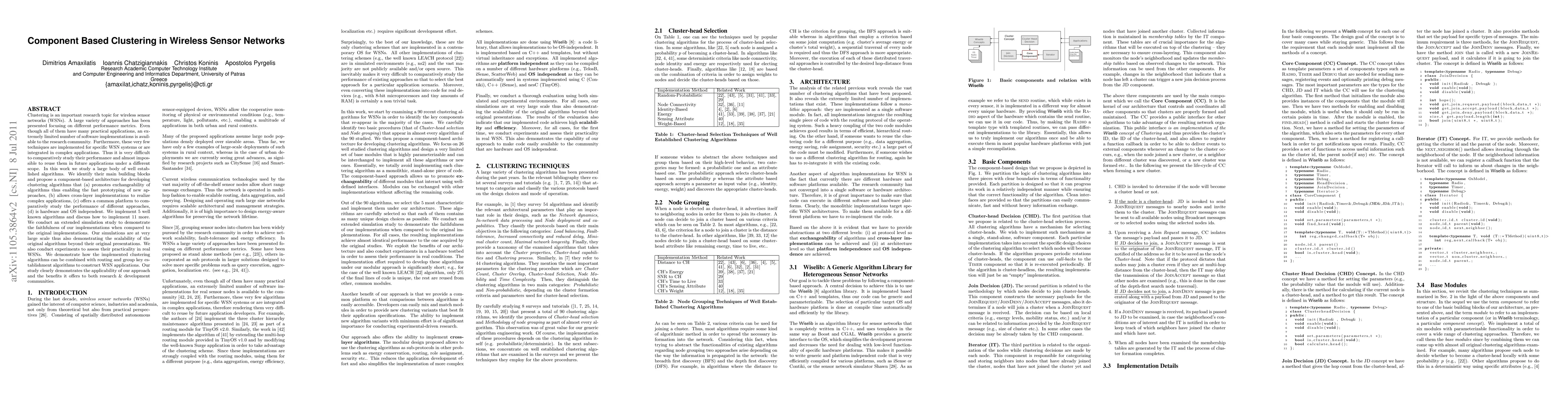 A research paper proposes a component-based clustering architecture for wireless sensor networks, enabling fast prototyping of new algorithms and comparison of performance across different approaches.