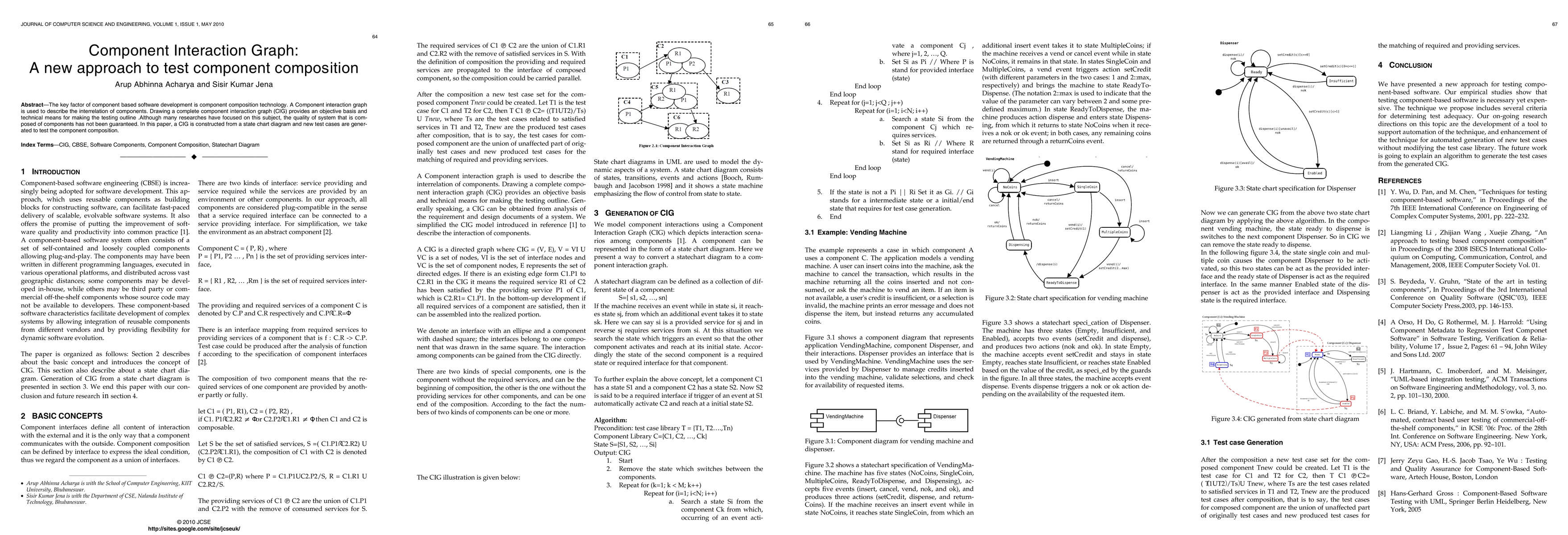 The key factor of component based software development is component composition technology. A Component interaction graph is used to describe the interrelation of components. Drawing a complete component interaction graph (CIG) provides an objective basis and technical means for making the testing outline. Although many researches have focused on this subject, the quality of system that is composed of components has not been guaranteed. In this paper, a CIG is constructed from a state chart diagram and new test cases are generated to test the component composition.