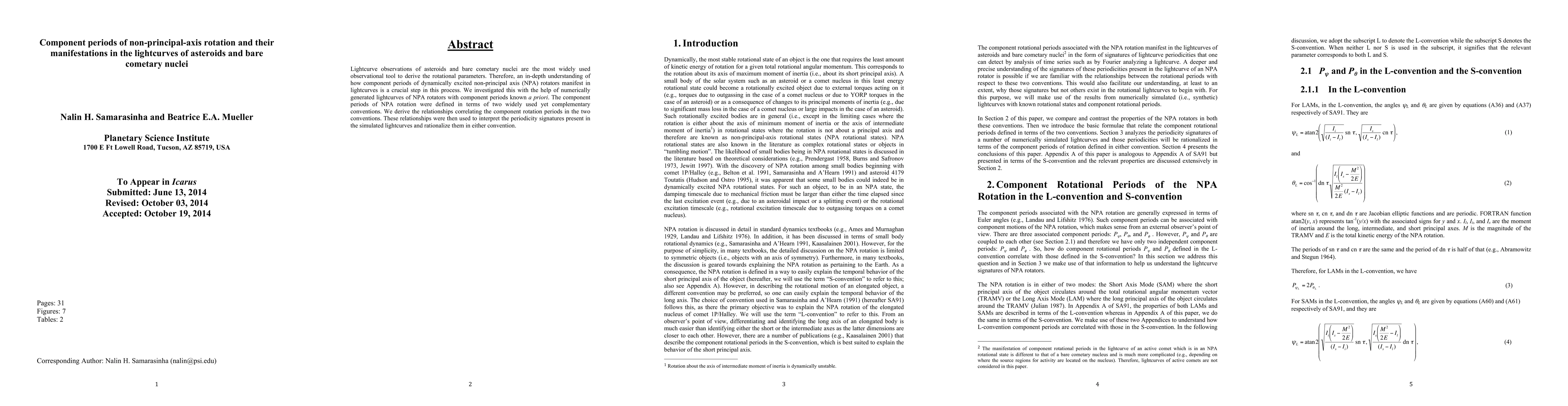 Lightcurve observations of asteroids and bare cometary nuclei are the most widely used observational tool to derive the rotational parameters. Therefore, an in-depth understanding of how component periods of dynamically excited non-principal axis (NPA) rotators manifest in lightcurves is a crucial step in this process. We investigated this with the help of numerically generated lightcurves of NPA rotators with component periods known a priori. The component periods of NPA rotation were defined in terms of two widely used yet complementary conventions. We derive the relationships correlating the component rotation periods in the two conventions. These relationships were then used to interpret the periodicity signatures present in the simulated lightcurves and rationalize them in either convention.