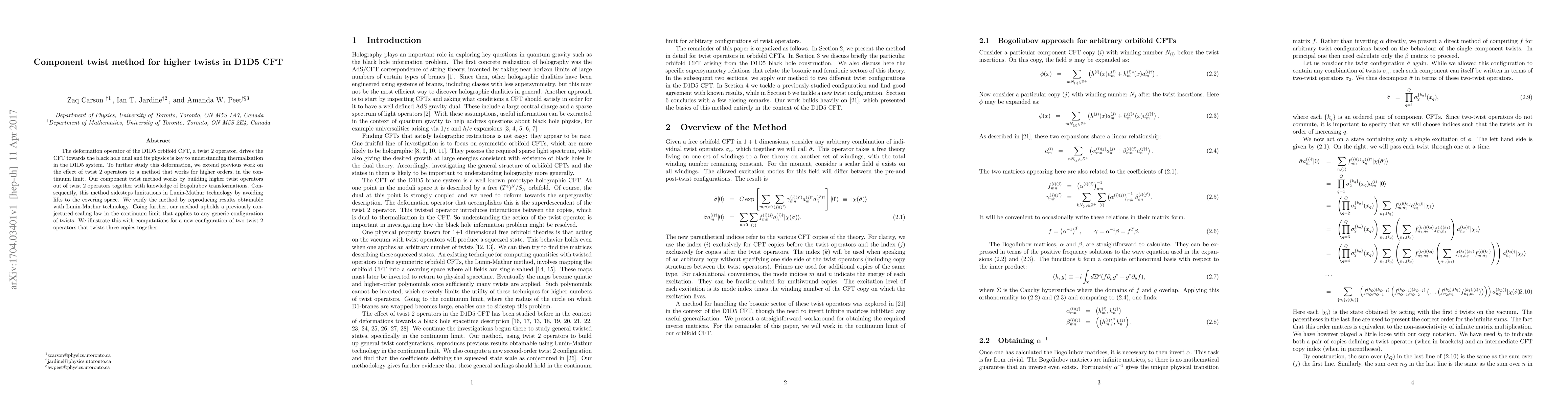 The deformation operator of the D1D5 orbifold CFT, a twist 2 operator, drives the CFT towards the black hole dual and its physics is key to understanding thermalization in the D1D5 system. To further study this deformation, we extend previous work on the effect of twist 2 operators to a method that works for higher orders, in the continuum limit. Our component twist method works by building higher twist operators out of twist 2 operators together with knowledge of Bogoliubov transformations. Consequently, this method sidesteps limitations in Lunin-Mathur technology by avoiding lifts to the covering space. We verify the method by reproducing results obtainable with Lunin-Mathur technology. Going further, our method upholds a previously conjectured scaling law in the continuum limit that applies to any generic configuration of twists. We illustrate this with computations for a new configuration of two twist 2 operators that twists three copies together.