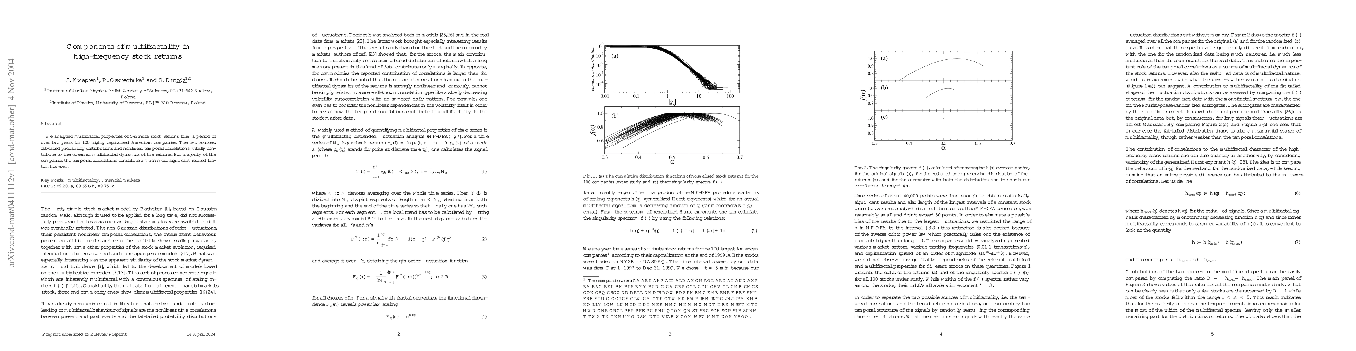 This study analyzed 2+ years of stock returns from 100 high-capitalized US companies to identify factors contributing to their multifractal dynamics. Nonlinear temporal correlations were found to be a more significant factor than fat-tailed probability distributions for most companies.