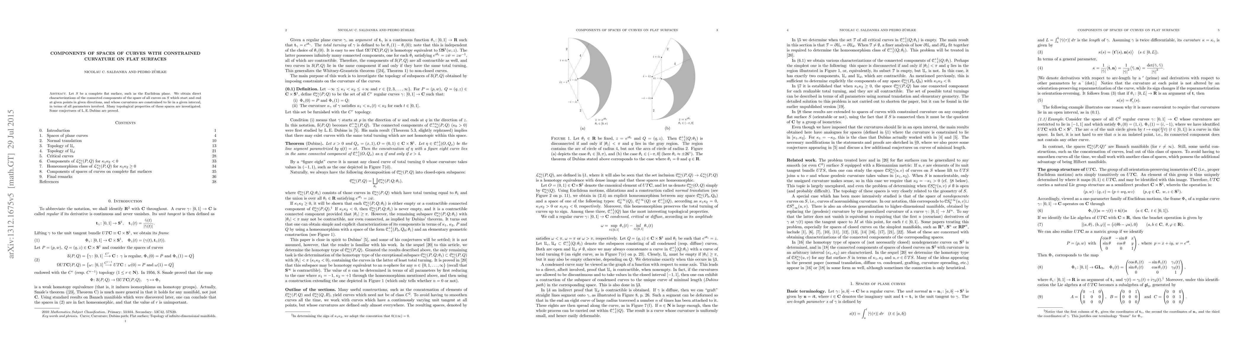 Let $S$ be a complete flat surface, such as the Euclidean plane. We obtain direct characterizations of the connected components of the space of all curves on $S$ which start and end at given points in given directions, and whose curvatures are constrained to lie in a given interval, in terms of all parameters involved. Many topological properties of these spaces are investigated. Some conjectures of L. E. Dubins are proved.