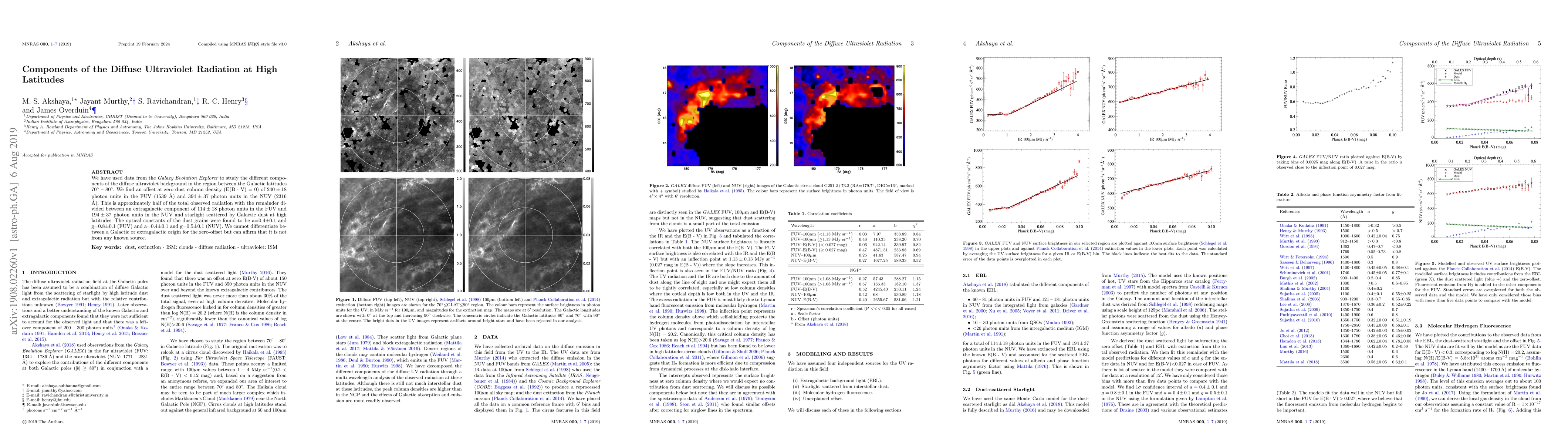 We have used data from the Galaxy Evolution Explorer to study the different components of the diffuse ultraviolet background in the region between the Galactic latitudes 70-80 degree. We find an offset at zero dust column density (E(B - V) = 0) of $240 \pm 18$ photon units in the FUV (1539A) and $394 \pm 37$ photon units in the NUV (2316A). This is approximately half of the total observed radiation with the remainder divided between an extragalactic component of $114 \pm 18$ photon units in the FUV and $194 \pm 37$ photon units in the NUV and starlight scattered by Galactic dust at high latitudes. The optical constants of the dust grains were found to be a=0.4$\pm$0.1 and g=0.8$\pm$0.1 (FUV) and a=0.4$\pm$0.1 and g=0.5$\pm$0.1 (NUV). We cannot differentiate between a Galactic or extragalactic origin for the zero-offset but can affirm that it is not from any known source.