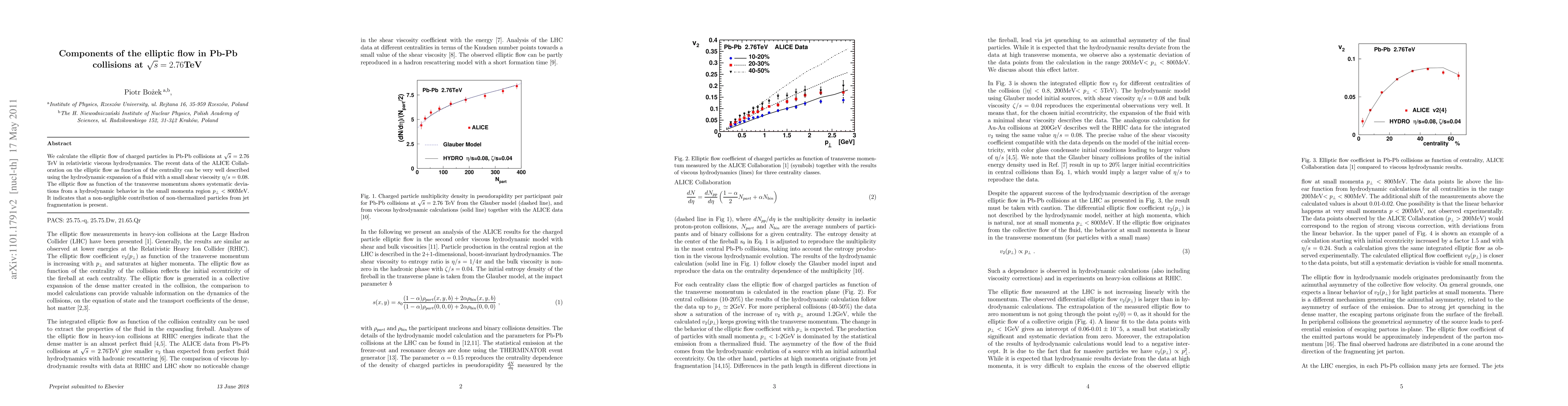 We calculate the elliptic flow of charged particles in Pb-Pb collisions at 2.76 TeV in relativistic viscous hydrodynamics. The recent data of the ALICE Collaboration on the elliptic flow as function of the centrality can be very well described using the hydrodynamic expansion of a fluid with a small shear viscosity eta/s=0.08. The elliptic flow as function of the transverse momentum shows systematic deviations from a hydrodynamic behavior in the small momenta region pt<800MeV. It indicates that a non-negligible contribution of non-thermalized particles from jet fragmentation is present.