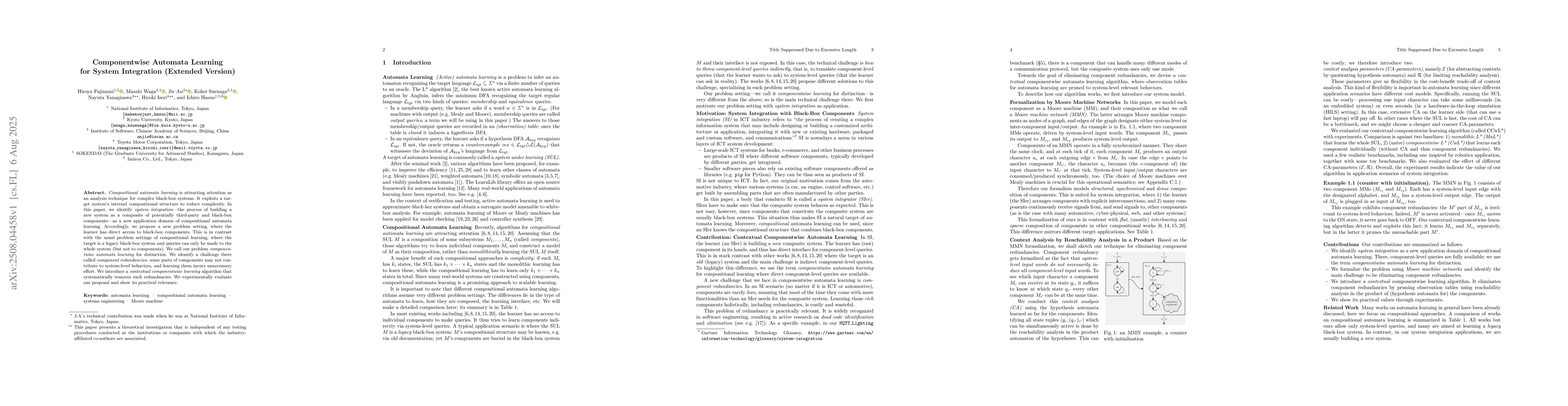 Compositional automata learning is attracting attention as an analysis technique for complex black-box systems. It exploits a target system's internal compositional structure to reduce complexity. In this paper, we identify system integration -- the process of building a new system as a composite of potentially third-party and black-box components -- as a new application domain of compositional automata learning. Accordingly, we propose a new problem setting, where the learner has direct access to black-box components. This is in contrast with the usual problem settings of compositional learning, where the target is a legacy black-box system and queries can only be made to the whole system (but not to components). We call our problem componentwise automata learning for distinction. We identify a challenge there called component redundancies: some parts of components may not contribute to system-level behaviors, and learning them incurs unnecessary effort. We introduce a contextual componentwise learning algorithm that systematically removes such redundancies. We experimentally evaluate our proposal and show its practical relevance.