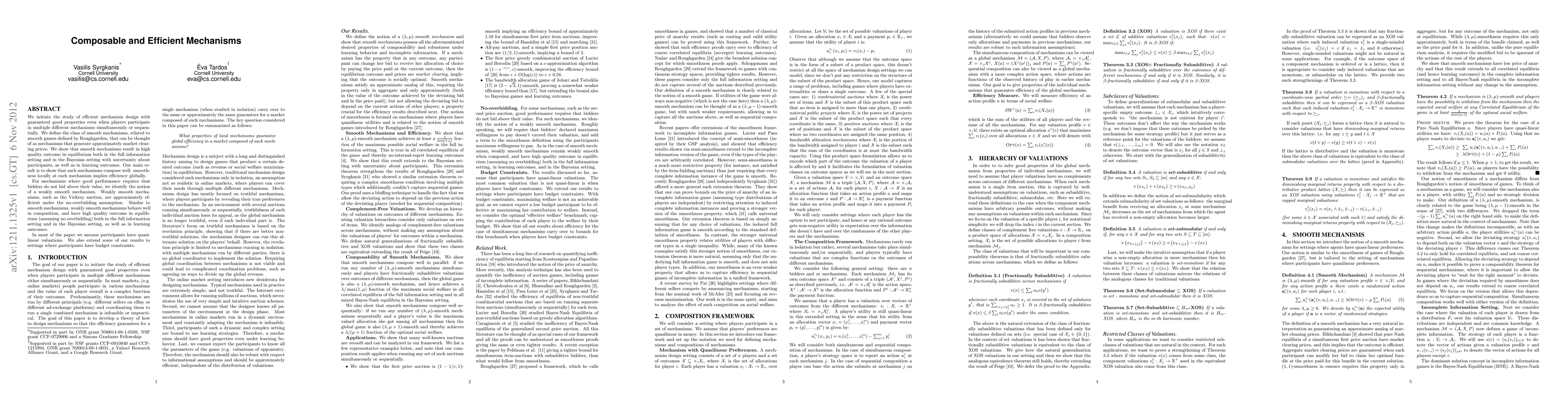 We initiate the study of efficient mechanism design with guaranteed good properties even when players participate in multiple different mechanisms simultaneously or sequentially. We define the class of smooth mechanisms, related to smooth games defined by Roughgarden, that can be thought of as mechanisms that generate approximately market clearing prices. We show that smooth mechanisms result in high quality outcome in equilibrium both in the full information setting and in the Bayesian setting with uncertainty about participants, as well as in learning outcomes. Our main result is to show that such mechanisms compose well: smoothness locally at each mechanism implies efficiency globally. For mechanisms where good performance requires that bidders do not bid above their value, we identify the notion of a weakly smooth mechanism. Weakly smooth mechanisms, such as the Vickrey auction, are approximately efficient under the no-overbidding assumption. Similar to smooth mechanisms, weakly smooth mechanisms behave well in composition, and have high quality outcome in equilibrium (assuming no overbidding) both in the full information setting and in the Bayesian setting, as well as in learning outcomes. In most of the paper we assume participants have quasi-linear valuations. We also extend some of our results to settings where participants have budget constraints.