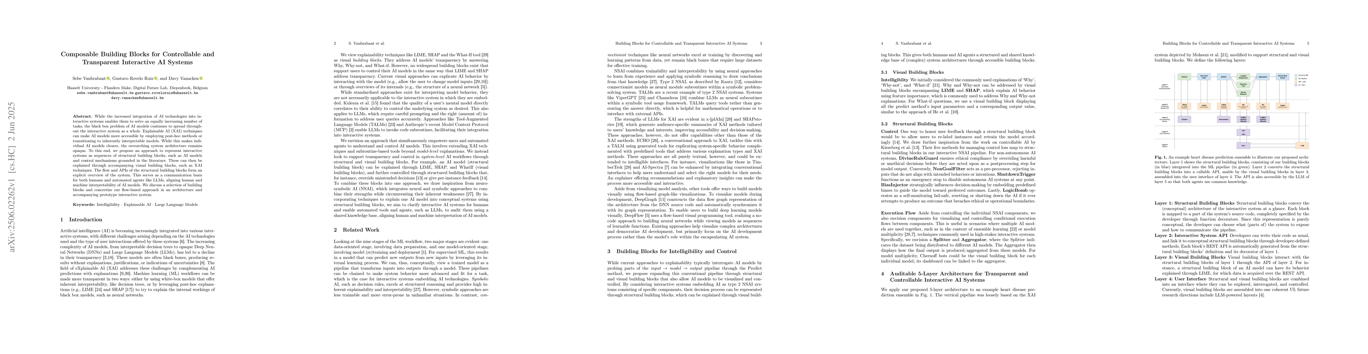 The paper proposes an approach to represent interactive systems as sequences of structural building blocks, including AI models and control mechanisms, grounded in literature. These blocks are explained through accompanying visual building blocks, such as XAI techniques, forming an explicit overview of the system for human and machine interpretability.