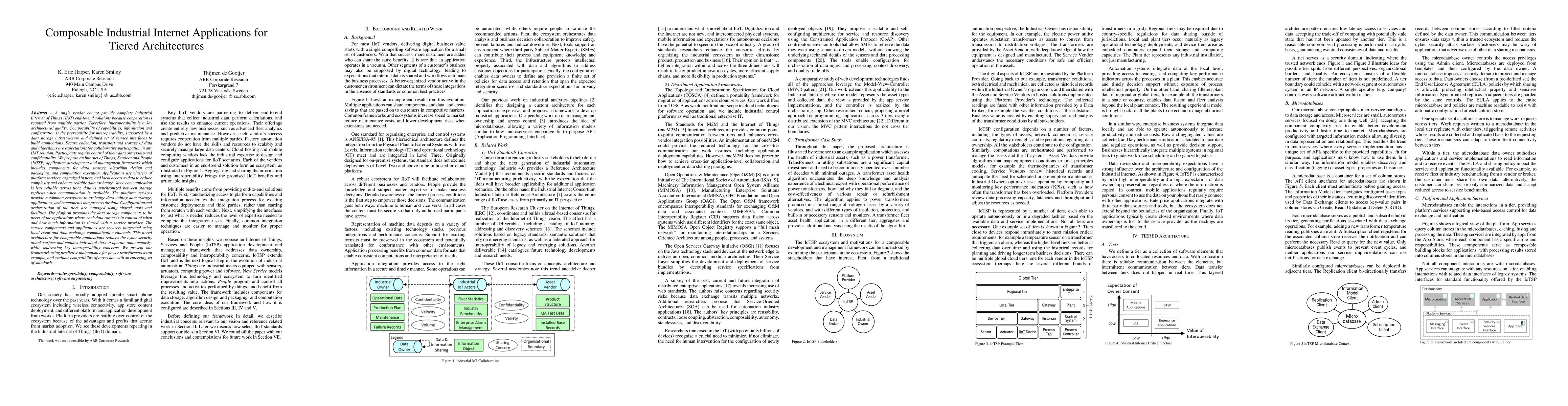 A framework for composable industrial internet applications is proposed to address interoperability concerns in IIoT solutions, enabling secure data exchange and control of data ownership between multiple parties.