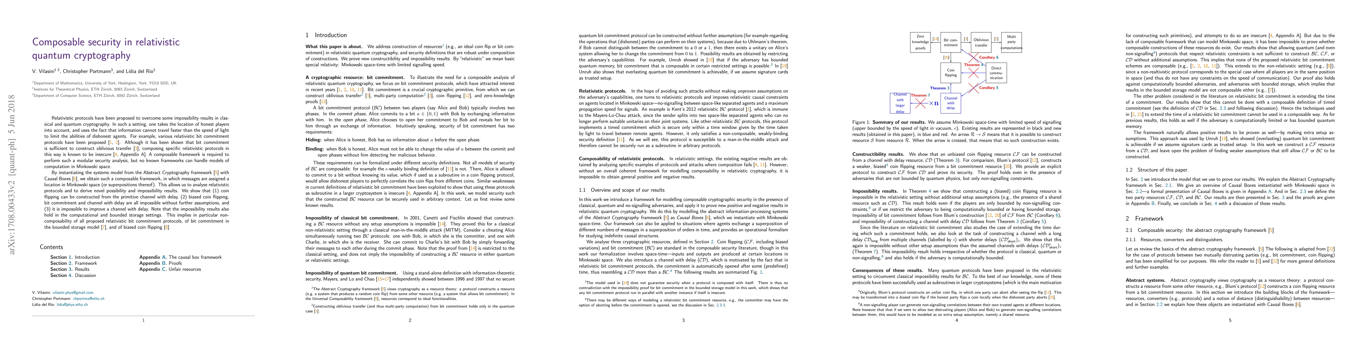 Researchers developed a composable framework for relativistic quantum cryptography, showing that certain protocols like coin flipping and bit commitment are impossible without further assumptions, while others can be constructed.