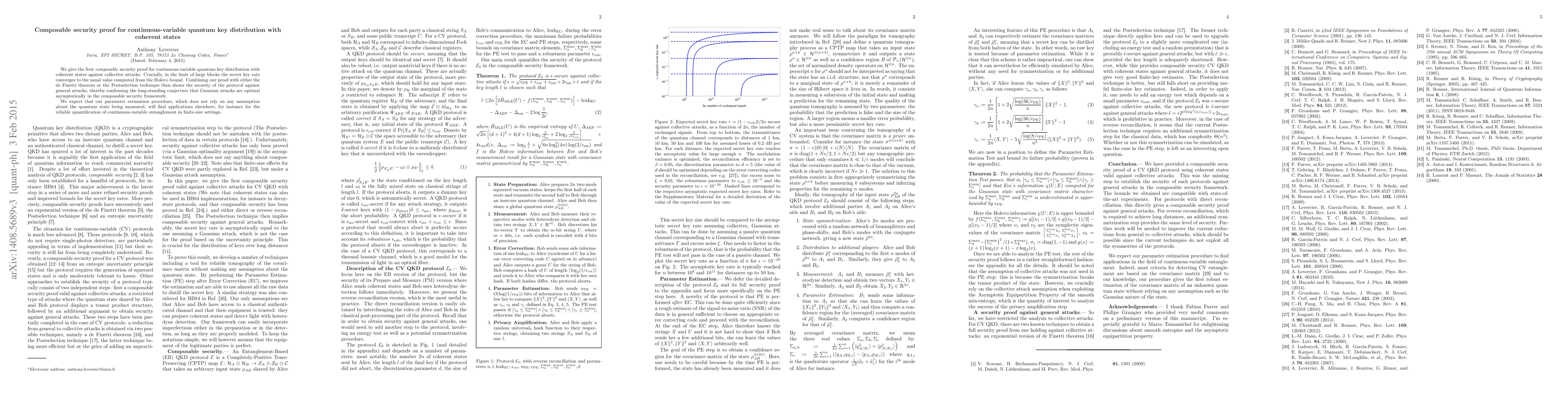 This paper presents the first composable security proof for continuous-variable quantum key distribution using coherent states, confirming Gaussian attacks as optimal asymptotically. The proposed parameter estimation method, which does not require assumptions, may also be useful for quantifying continuous-variable entanglement.