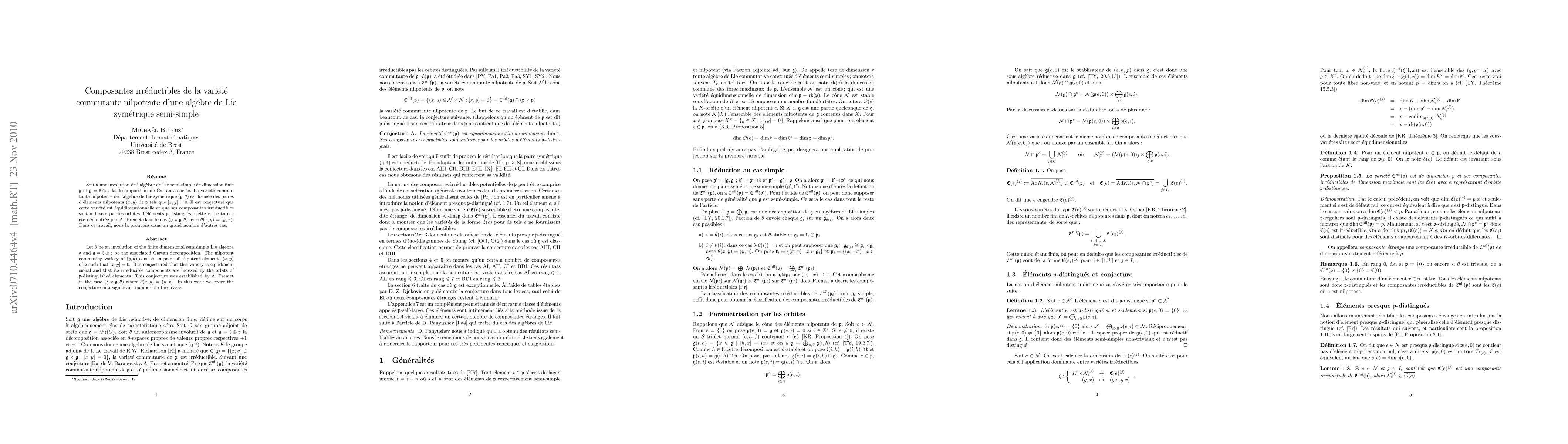 Let \theta be an involution of the semisimple Lie algebra g and g=k+p be the associated Cartan decomposition. The nilpotent commuting variety of (g,\theta) consists in pairs of nilpotent elements (x,y) of p such that [x,y]=0. It is conjectured that this variety is equidimensional and that its irreducible components are indexed by the orbits of p-distinguished elements. This conjecture was established by A. Premet in the case (g \times g, \theta) where \theta(x,y)=(y,x). In this work we prove the conjecture in a significant number of other cases.