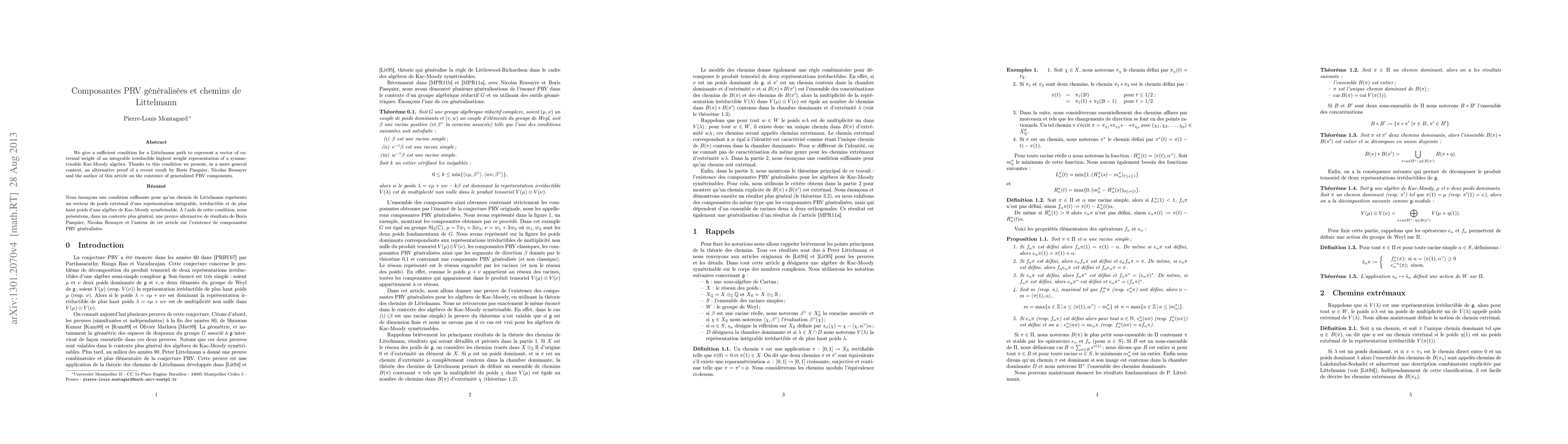 We give a sufficient condition for a Littelmann path to represent a vector of extremal weight of an integrable irreducible highest weight representation of a symmetrisable Kac-Moody algebra. Thanks to this condition we present, in a more general context, an alternative proof of recent result by Boris Pasquier, Nicolas Ressayre and the author of this article on the existence of generalized PRV components.