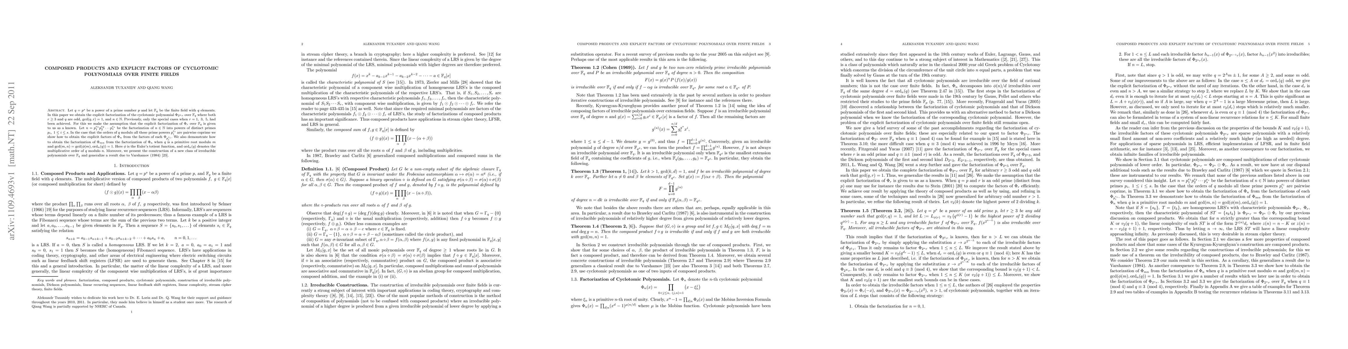 Let $q = p^s$ be a power of a prime number $p$ and let $\mathbb{F}_q$ be the finite field with $q$ elements. In this paper we obtain the explicit factorization of the cyclotomic polynomial $\Phi_{2^nr}$ over $\mathbb{F}_q$ where both $r \geq 3$ and $q$ are odd, $\gcd(q,r) = 1$, and $n\in \mathbb{N}$. Previously, only the special cases when $r = 1,\ 3,\ 5$ had been achieved. For this we make the assumption that the explicit factorization of $\Phi_r$ over $\mathbb{F}_q$ is given to us as a known. Let $n = p_1^{e_1}p_2^{e_2}... p_s^{e_s}$ be the factorization of $n \in \mathbb{N}$ into powers of distinct primes $p_i,\ 1\leq i \leq s$. In the case that the orders of $q$ modulo all these prime powers $p_i^{e_i}$ are pairwise coprime we show how to obtain the explicit factors of $\Phi_{n}$ from the factors of each $\Phi_{p_i^{e_i}}$. We also demonstrate how to obtain the factorization of $\Phi_{mn}$ from the factorization of $\Phi_n$ when $q$ is a primitive root modulo $m$ and $\gcd(m,n) = \gcd(\phi(m),\ord_n(q)) = 1$. Here $\phi$ is the Euler's totient function, and $\ord_n(q)$ denotes the multiplicative order of $q$ modulo $n$. Moreover, we present the construction of a new class of irreducible polynomials over $\mathbb{F}_q$ and generalize a result due to Varshamov (1984) \cite{Varshamov}.