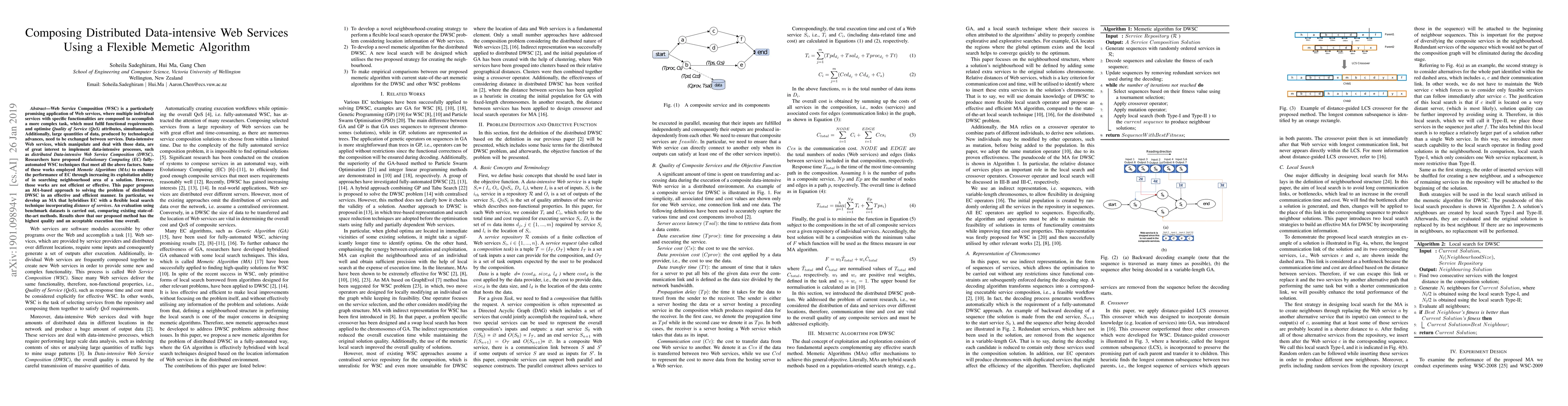 This paper proposes a novel Memetic Algorithm (MA) that combines Evolutionary Computing with a flexible local search technique to efficiently compose distributed data-intensive web services. Evaluations against state-of-the-art methods demonstrate superior performance in terms of both solution quality and execution time.
