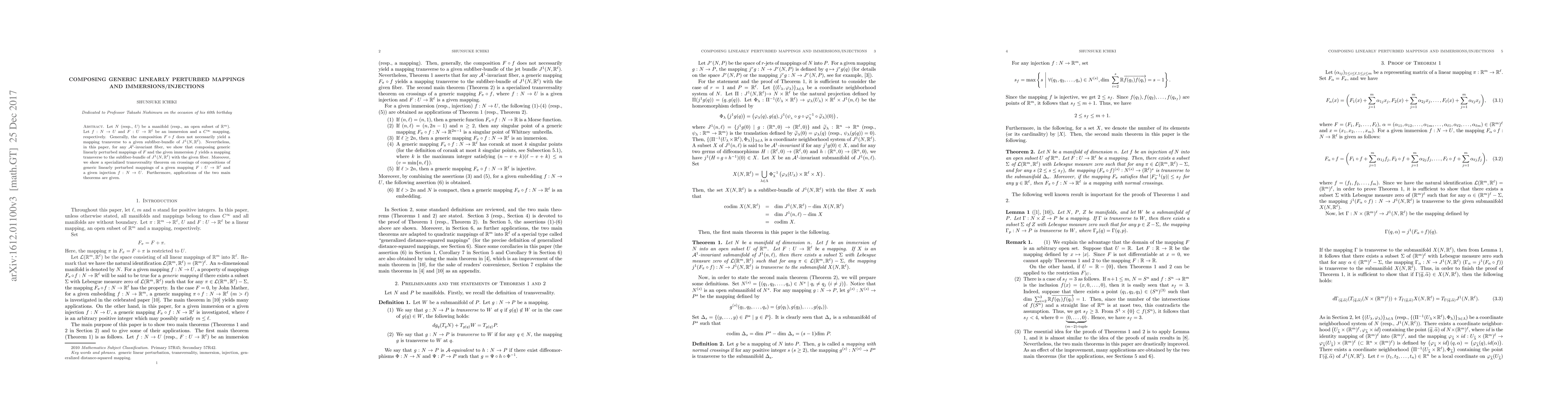 This paper proves that composing a generic linearly perturbed version of a smooth mapping $F$ with a given immersion $f$ results in a mapping transverse to a specified subfiber-bundle of $J^1(N,\mathbb{R}^\ell)$. It also presents a transversality theorem for crossings involving perturbed mappings and injections.