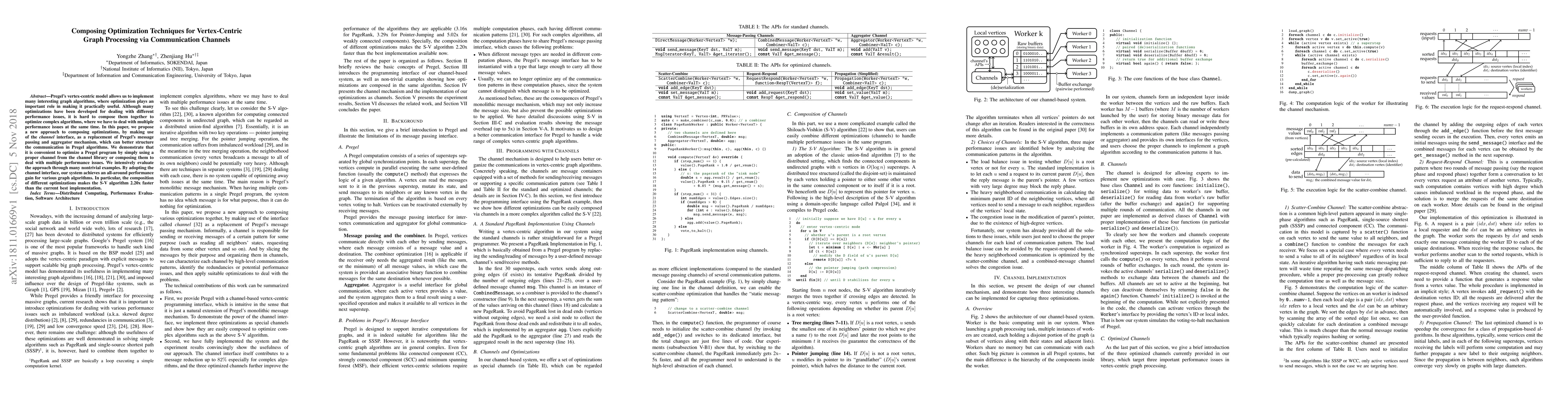 Pregel's vertex-centric model allows us to implement many interesting graph algorithms, where optimization plays an important role in making it practically useful. Although many optimizations have been developed for dealing with different performance issues, it is hard to compose them together to optimize complex algorithms, where we have to deal with multiple performance issues at the same time. In this paper, we propose a new approach to composing optimizations, by making use of the \emph{channel} interface, as a replacement of Pregel's message passing and aggregator mechanism, which can better structure the communication in Pregel algorithms. We demonstrate that it is convenient to optimize a Pregel program by simply using a proper channel from the channel library or composing them to deal with multiple performance issues. We intensively evaluate the approach through many nontrivial examples. By adopting the channel interface, our system achieves an all-around performance gain for various graph algorithms. In particular, the composition of different optimizations makes the S-V algorithm 2.20x faster than the current best implementation.