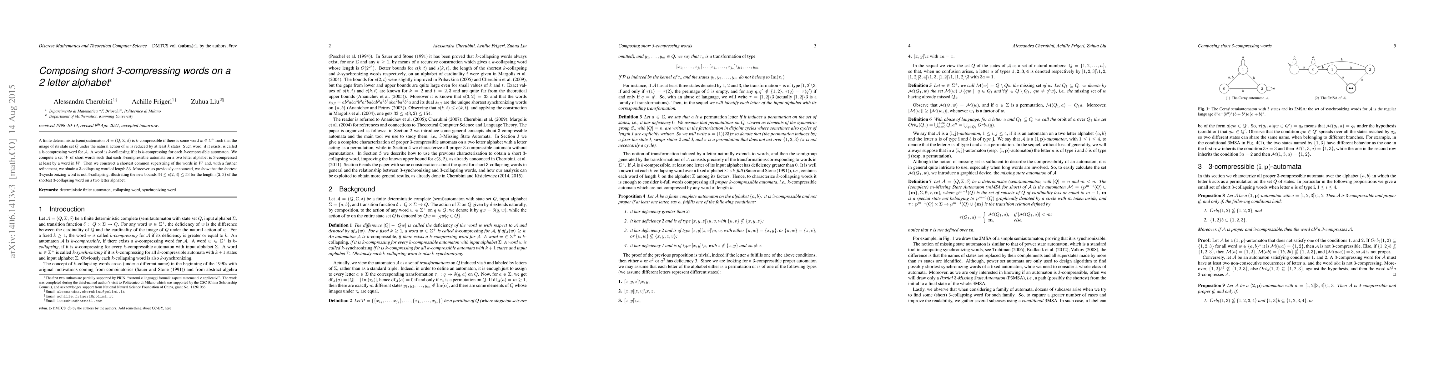 Researchers found a 53-letter word that can compress any 3-compressible automaton on a two-letter alphabet, proving new bounds for the length of the shortest such word.