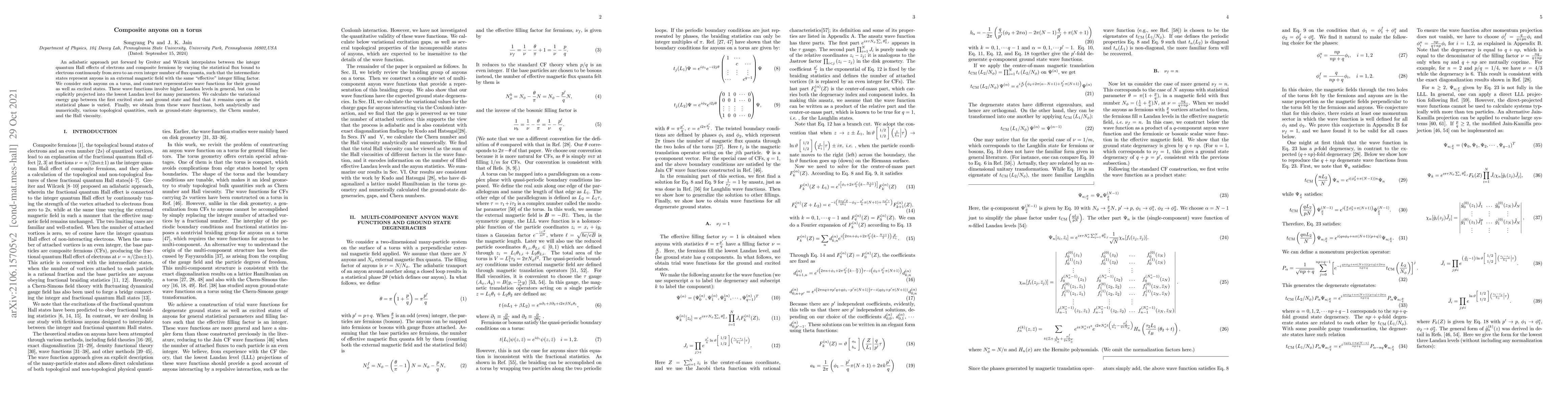 An adiabatic approach put forward by Greiter and Wilczek interpolates between the integer quantum Hall effects of electrons and composite fermions by varying the statistical flux bound to electrons continuously from zero to an even integer number of flux quanta, such that the intermediate states represent anyons in an external magnetic field with the same "effective" integer filling factor. We consider such anyons on a torus, and construct representative wave functions for their ground as well as excited states. These wave functions involve higher Landau levels in general, but can be explicitly projected into the lowest Landau level for many parameters. We calculate the variational energy gap between the first excited state and ground state and find that it remains open as the statistical phase is varied. Finally, we obtain from these wave functions, both analytically and numerically, various topological quantities, such as ground-state degeneracy, the Chern number, and the Hall viscosity.