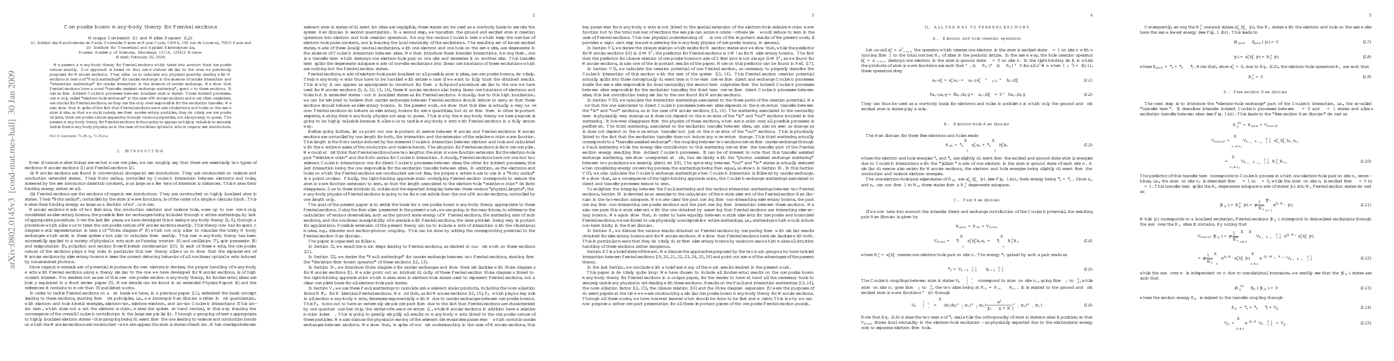 We present a many-body theory for Frenkel excitons which takes into account their composite nature exactly. Our approach is based on four commutators similar to the ones we previously proposed for Wannier excitons. They allow us to calculate any physical quantity dealing with $N$ excitons in terms of "Pauli scatterings" for carrier exchange in the absence of carrier interaction and "interaction scatterings" for carrier interaction in the absence of carrier exchange. We show that Frenkel excitons have a novel "transfer assisted exchange scattering", specific to these excitons. It comes from indirect Coulomb processes between localized atomic states. These indirect processes, commonly called "electron-hole exchange" in the case of Wannier excitons and most often neglected, are crucial for Frenkel excitons, as they are the only ones responsible for the excitation transfer. We also show that in spite of the fact that Frenkel excitons are made of electrons and holes on the same atomic site, so that we could naively see them as elementary particles, they definitely are composite objects, their composite nature appearing through various properties, not always easy to guess. The present many-body theory for Frenkel excitons is thus going to appear as highly valuable to securely tackle their many-body physics, as in the case of nonlinear optical effects in organic semiconductors.