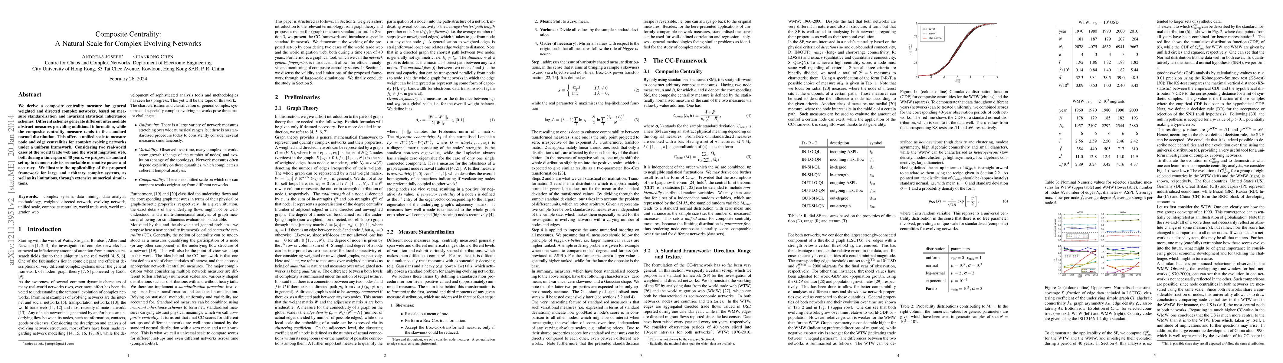 This paper introduces a composite centrality measure for complex evolving networks, providing a unified scale for node and edge centralities based on standardisation and statistical inheritance. The proposed measure is demonstrated to be effective on real-world datasets of world trade and migration networks over 40 years, showcasing its accuracy and applicability to large, complex systems.