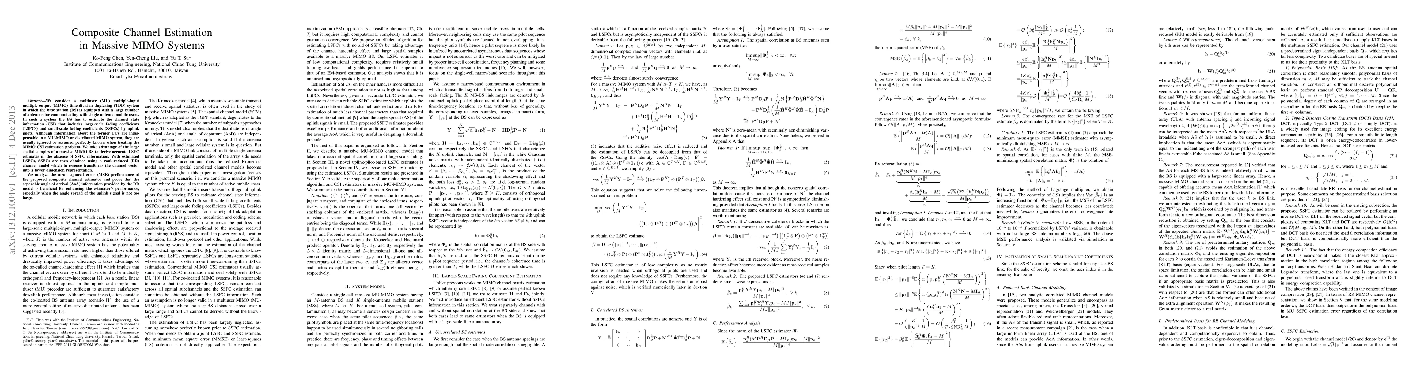 We consider a multiuser (MU) multiple-input multiple-output (MIMO) time-division duplexing (TDD) system in which the base station (BS) is equipped with a large number of antennas for communicating with single-antenna mobile users. In such a system the BS has to estimate the channel state information (CSI) that includes large-scale fading coefficients (LSFCs) and small-scale fading coefficients (SSFCs) by uplink pilots. Although information about the former FCs are indispensable in a MU-MIMO or distributed MIMO system, they are usually ignored or assumed perfectly known when treating the MIMO CSI estimation problem. We take advantage of the large spatial samples of a massive MIMO BS to derive accurate LSFC estimates in the absence of SSFC information. With estimated LSFCs, SSFCs are then obtained using a rank-reduced (RR) channel model which in essence transforms the channel vector into a lower dimension representation. We analyze the mean squared error (MSE) performance of the proposed composite channel estimator and prove that the separable angle of arrival (AoA) information provided by the RR model is beneficial for enhancing the estimator's performance, especially when the angle spread of the uplink signal is not too large.