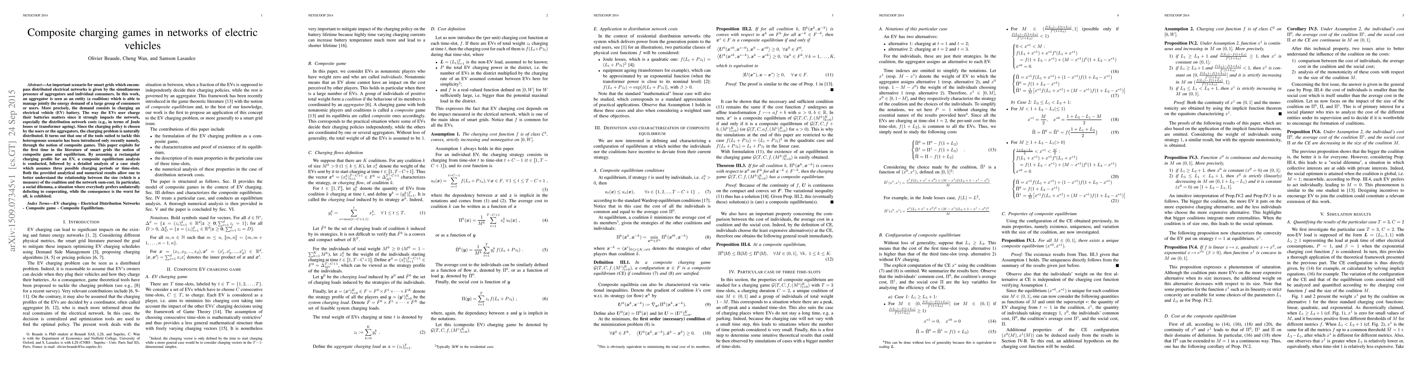 An important scenario for smart grids which encompass distributed electrical networks is given by the simultaneous presence of aggregators and individual consumers. In this work, an aggregator is seen as an entity (a coalition) which is able to manage jointly the energy demand of a large group of consumers or users. More precisely, the demand consists in charging an electrical vehicle (EV) battery. The way the EVs user charge their batteries matters since it strongly impacts the network, especially the distribution network costs (e.g., in terms of Joule losses or transformer ageing). Since the charging policy is chosen by the users or the aggregators, the charging problem is naturally distributed. It turns out that one of the tools suited to tackle this heterogenous scenario has been introduced only recently namely, through the notion of composite games. This paper exploits for the first time in the literature of smart grids the notion of composite game and equilibrium. By assuming a rectangular charging profile for an EV, a composite equilibrium analysis is conducted, followed by a detailed analysis of a case study which assumes three possible charging periods or time-slots. Both the provided analytical and numerical results allow one to better understand the relationship between the size (which is a measure) of the coalition and the network sum-cost. In particular, a social dilemma, a situation where everybody prefers unilaterally defecting to cooperating, while the consequence is the worst for all, is exhibited.
