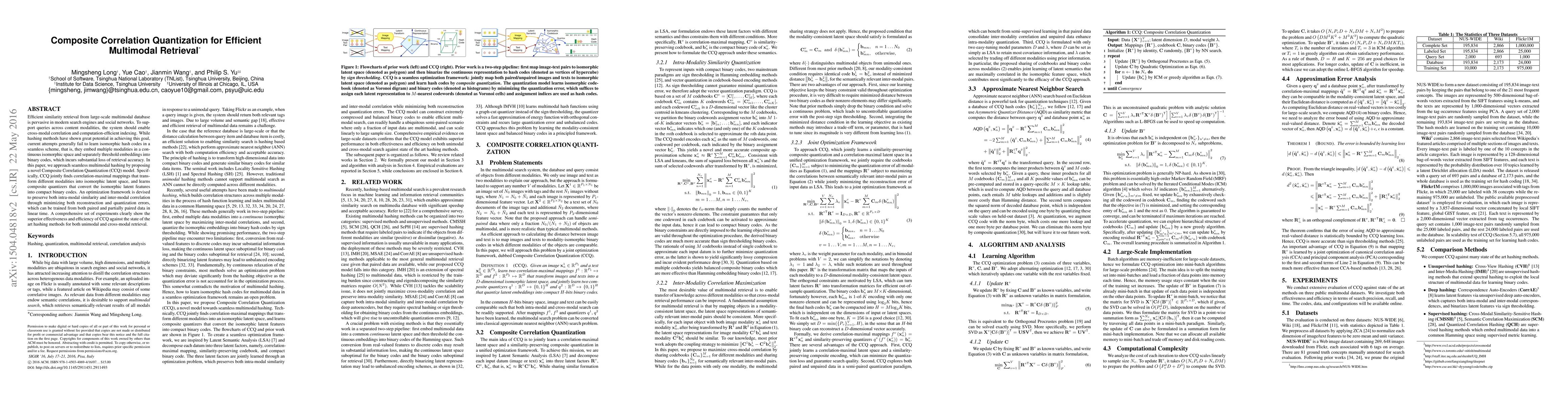 This paper proposes a Composite Correlation Quantization (CCQ) model to enhance efficient multimodal retrieval by transforming different modalities into an isomorphic latent space and learning composite quantizers for compact binary codes, achieving superior performance over existing hashing methods. The optimization framework preserves intra-modal and inter-modal correlations while maintaining computational efficiency.