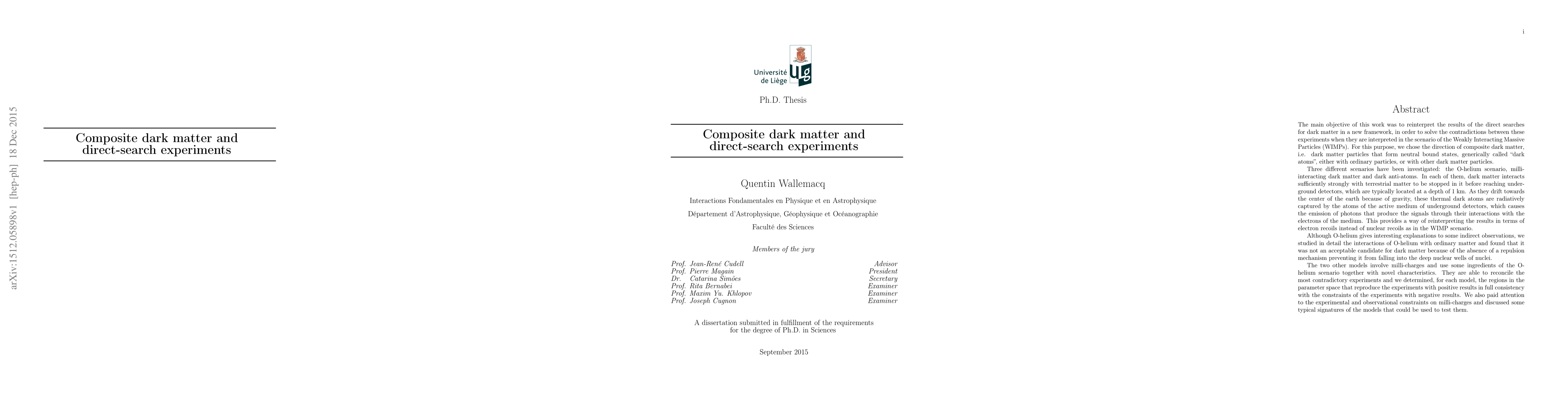 The research investigates composite dark matter models, specifically focusing on O-helium and other scenarios like milli-interacting dark matter and dark anti-atoms. It uses a reinterpretation of direct search results for dark matter, considering bound states (dark atoms) formed by dark matter particles with either ordinary particles or other dark matter particles.
