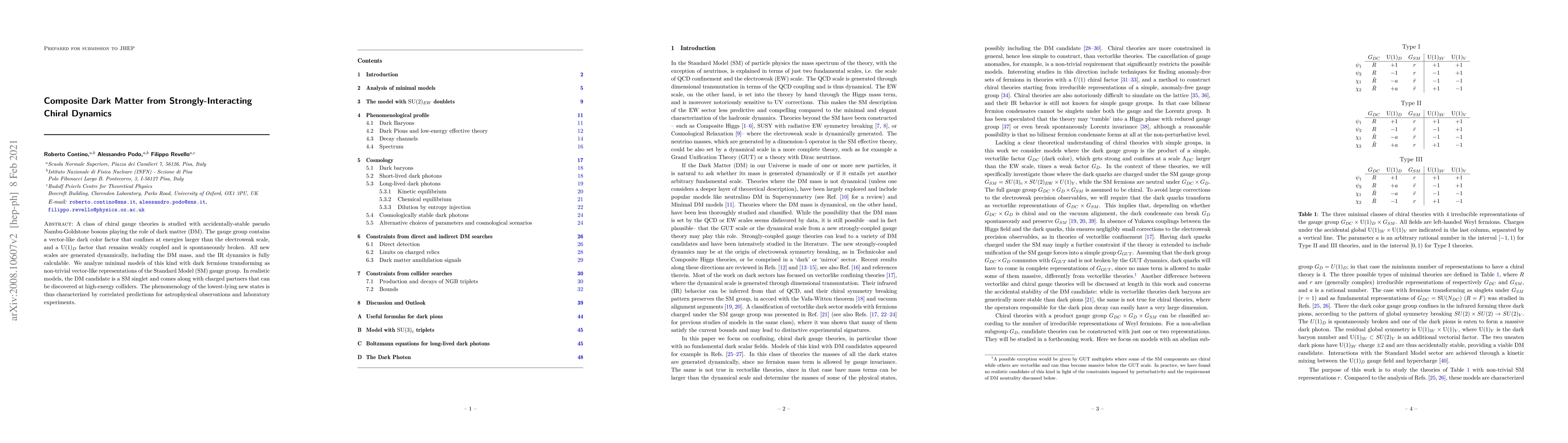 A class of chiral gauge theories is studied with accidentally-stable pseudo Nambu-Goldstone bosons playing the role of dark matter (DM). The gauge group contains a vector-like dark color factor that confines at energies larger than the electroweak scale, and a ${\rm U}(1)_D$ factor that remains weakly coupled and is spontaneously broken. All new scales are generated dynamically, including the DM mass, and the IR dynamics is fully calculable. We analyze minimal models of this kind with dark fermions transforming as non-trivial vector-like representations of the Standard Model (SM) gauge group. In realistic models, the DM candidate is a SM singlet and comes along with charged partners that can be discovered at high-energy colliders. The phenomenology of the lowest-lying new states is thus characterized by correlated predictions for astrophysical observations and laboratory experiments.