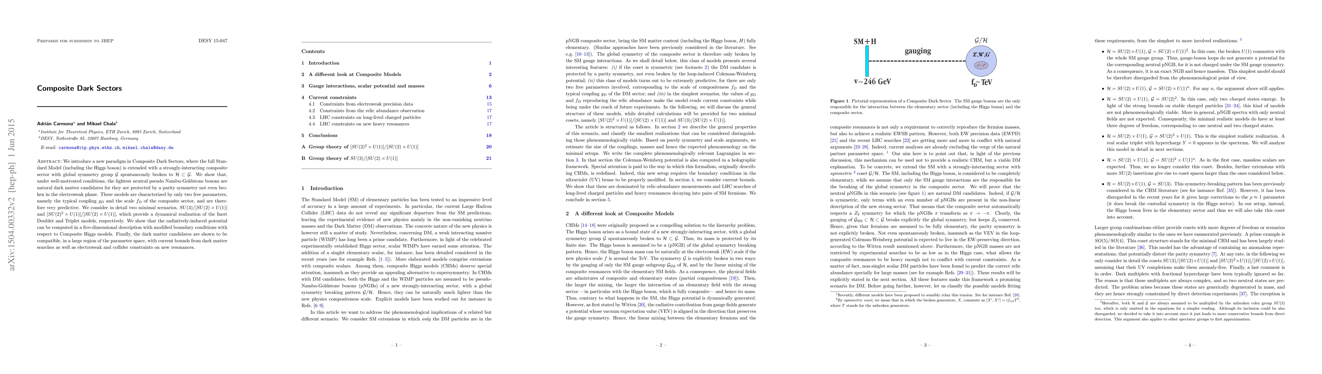We introduce a new paradigm in Composite Dark Sectors, where the full Standard Model (including the Higgs boson) is extended with a strongly-interacting composite sector with global symmetry group $\mathcal{G}$ spontaneously broken to $\mathcal{H}\subset \mathcal{G}$. We show that, under well-motivated conditions, the lightest neutral pseudo Nambu-Goldstone bosons are natural dark matter candidates for they are protected by a parity symmetry not even broken in the electroweak phase. These models are characterized by only two free parameters, namely the typical coupling $g_D$ and the scale $f_D$ of the composite sector, and are therefore very predictive. We consider in detail two minimal scenarios, $SU(3)/[SU(2)\times U(1)]$ and $[SU(2)^2\times U(1)]/[SU(2)\times U(1)]$, which provide a dynamical realization of the Inert Doublet and Triplet models, respectively. We show that the radiatively-induced potential can be computed in a five-dimensional description with modified boundary conditions with respect to Composite Higgs models. Finally, the dark matter candidates are shown to be compatible, in a large region of the parameter space, with current bounds from dark matter searches as well as electroweak and collider constraints on new resonances.